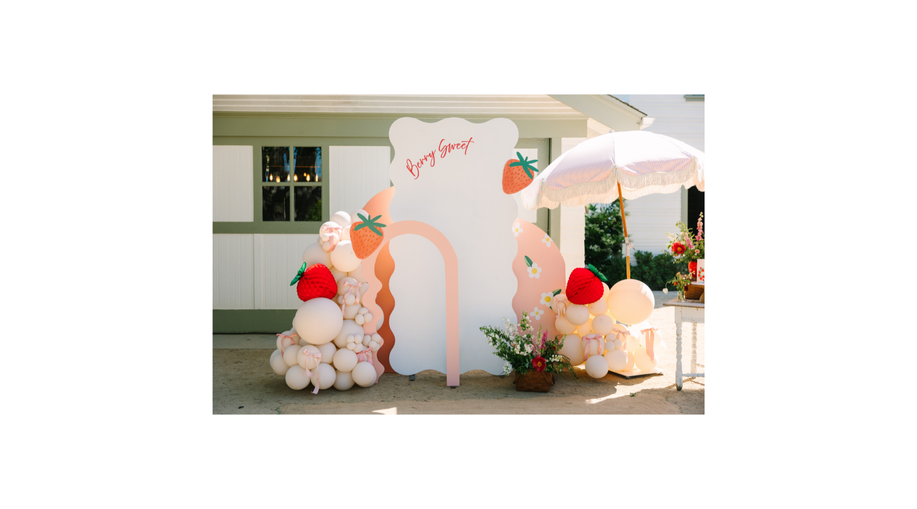 Balloons are essential for “berry” big celebrations. From pink and red balloon garlands to strawberry balloon backdrops, there are lots of juicy ways to decorate your space. We recommend incorporating honeycomb strawberry decorations to tie the theme together, like @beijosevents did here with @goldiecrewcreative and @balloonworks_.