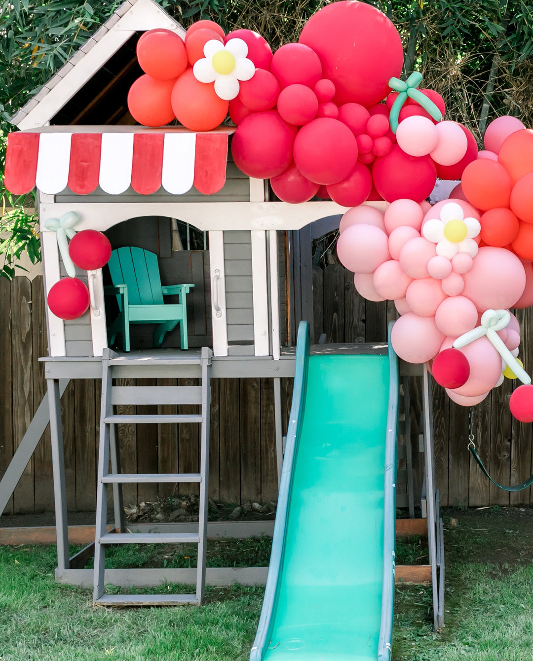If you’re hosting a cherry-themed birthday bash, we recommend decorating with a brimming balloon garland in shades of red and blush. Incorporate some bow-shaped balloons and streamers to add depth and dimension. Finally, tie it all together with a cherry honeycomb garland.
