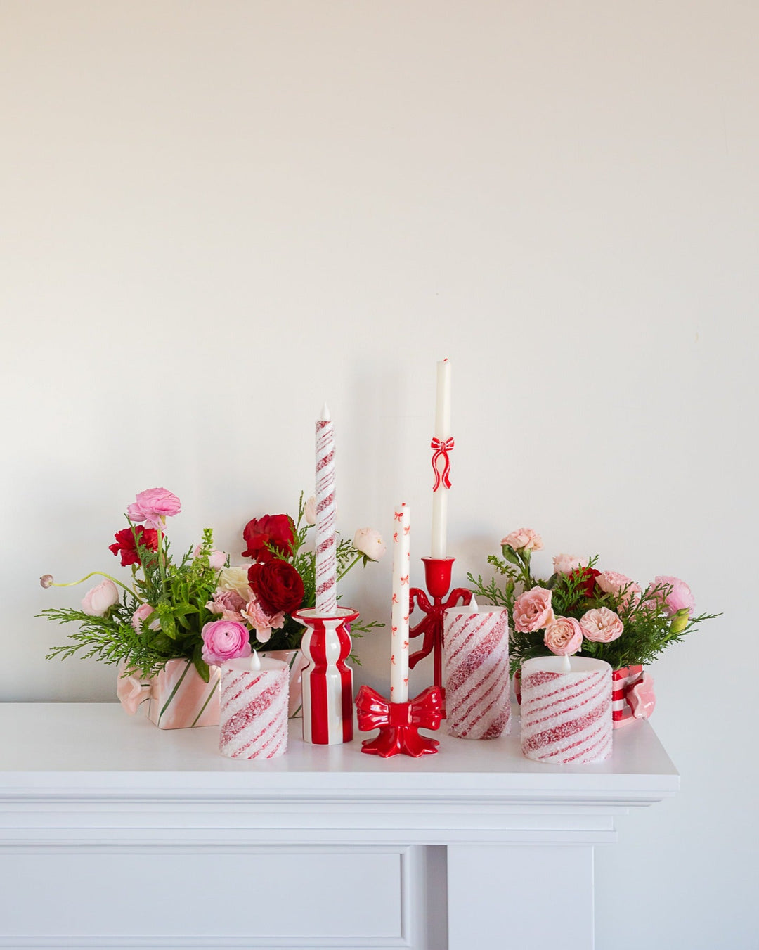If you want to add a little more elegance to a small display, simply incorporate some fresh winter bouquets! Paired with peppermint striped candles, this mantel decor is sure to leave a fa-la-la-la-lasting impression on all your holiday guests!