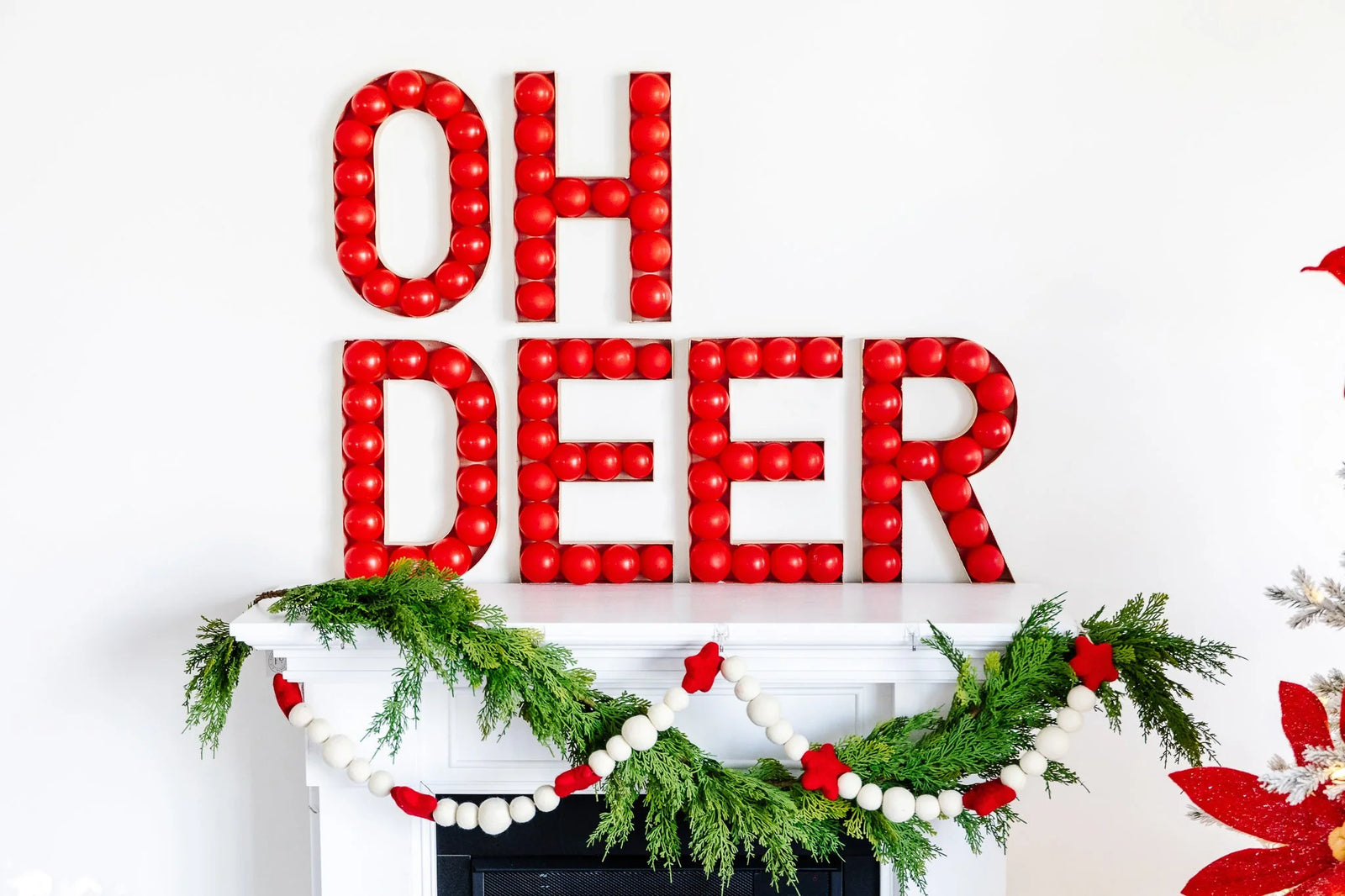 Oh deer, this mantel has us stopped in our tracks! We can’t help but add some balloons to the holiday decor scene, and we love how adorable these letters are! A red balloon mosaic like this is perfect for a Christmas party, or as a playful holiday decoration to leave up all season long! How’s that for a Christmas mantel idea?