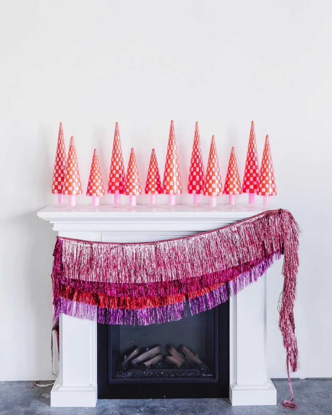 If traditional trees aren't sparking your Christmas light, then go for something plaid or checkered! Bold glass trees make such a stunning statement in your living room, set alone or with a coordinating garland.