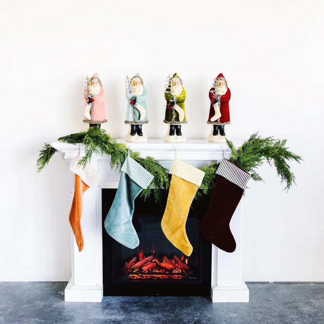 Don't forget to hang our stockings by the chimney with care! This Christmas mantel gives us all the warm holiday feels, and is super simple to recreate for a classic holiday tableau. Simply coordinate some Santa figurines with matching velvet stockings and drape a simple evergreen garland over top. Pair with knit stockings for a more rustic farmhouse feel.