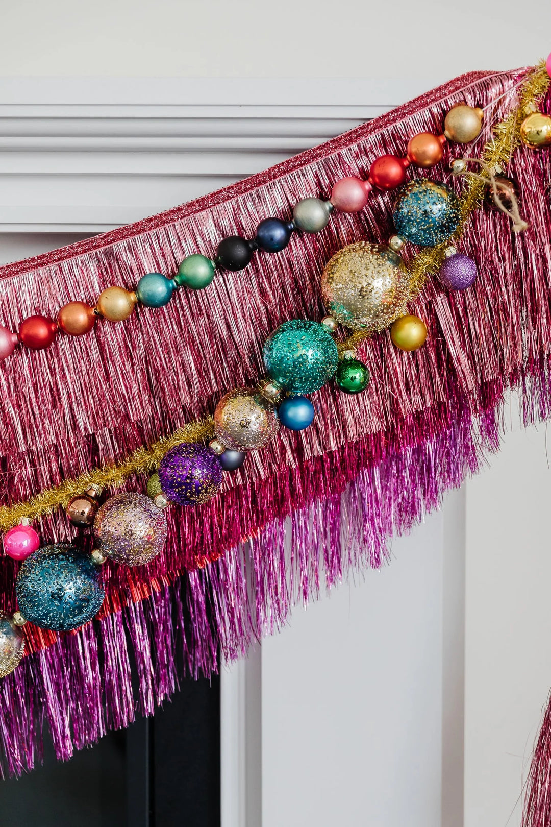 Let's talk about garlands! It's a no-brainer that your Christmas mantel would not be complete without one or two... or three! Layering a few sparkly garlands adds so much dimension and character to any mantel. It's also a whimsical way to add pops of color to your traditional Christmas decorations!