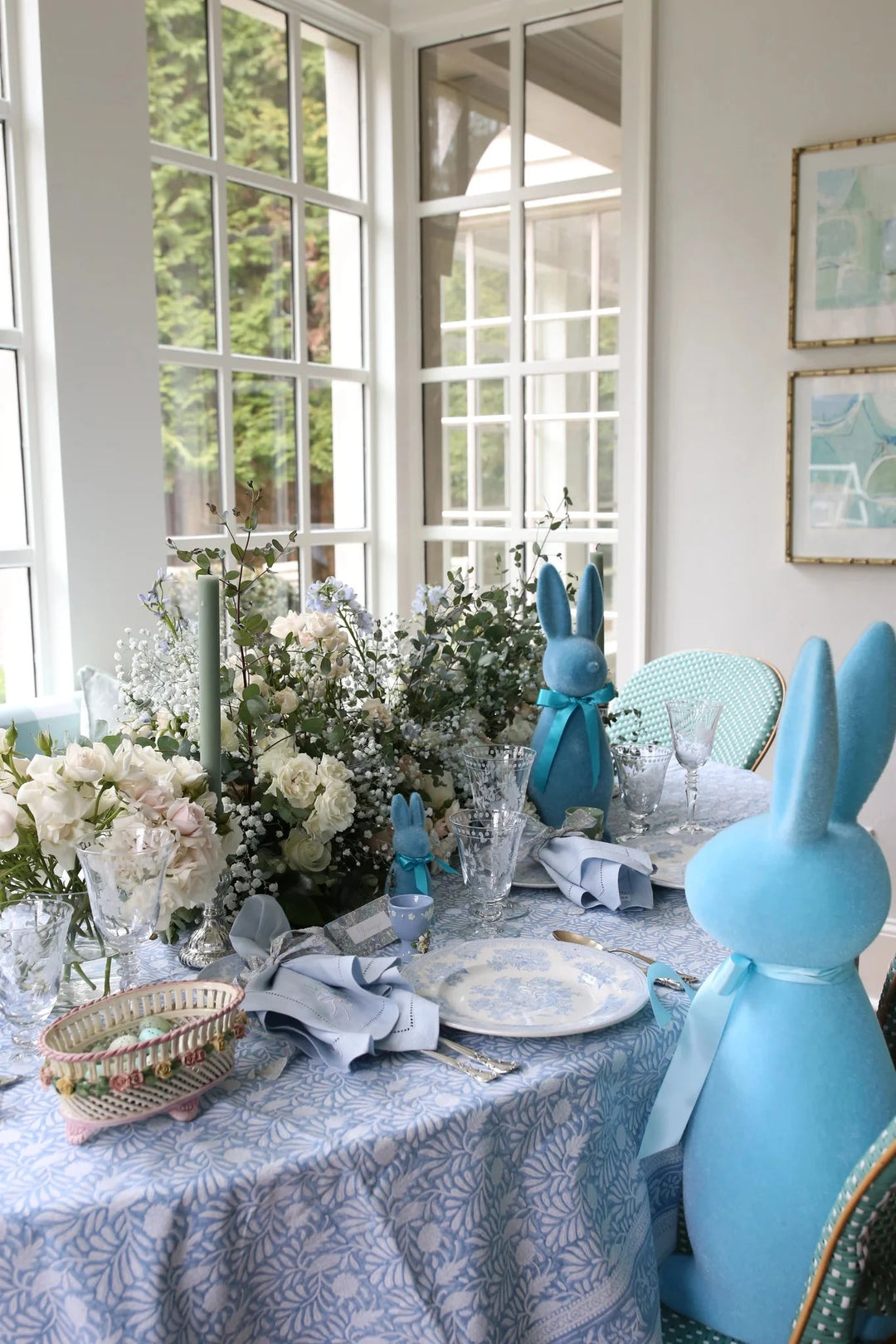 You can also create some unique Easter table decorations with small flocked bunnies. We love how whimsical they look popped in an Easter basket at the center of the table.
