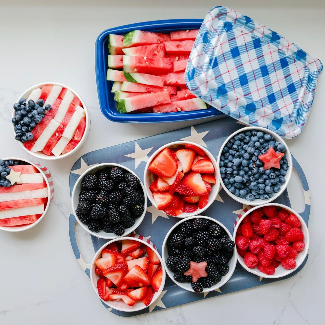 Don’t forget the watermelon! A classic summer fruit, you can easily cut it into slivers for an American flag fruit cup, or create tiny stars to garnish your cocktails and party drinks.