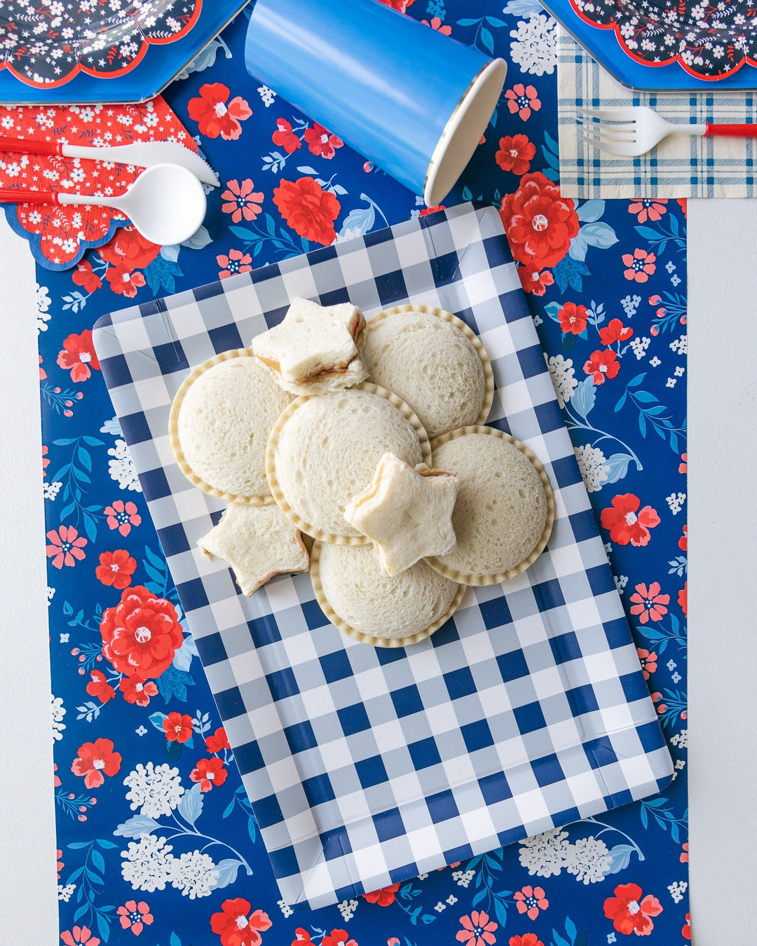 Presentation is key to making your food table feel like part of the party. We suggest using elevated party supplies like our Happy 4th of July Dessert Plates and Red Gingham 4th of July Napkins. Add levels and texture with festive serveware and decor to create the perfect photo-ready setup.