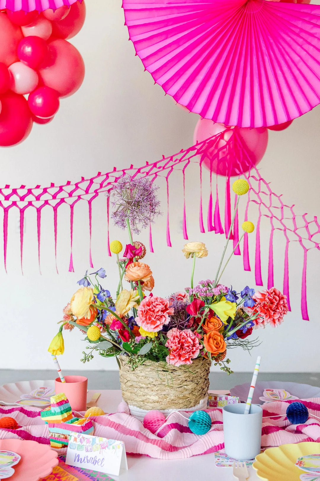 If you’re looking for a simple one-and-done option, this feliz party fan decoration kit is fabulous. The key is to incorporate all the eye-catching colors in the film, so the more bright decorations you have, the better!
