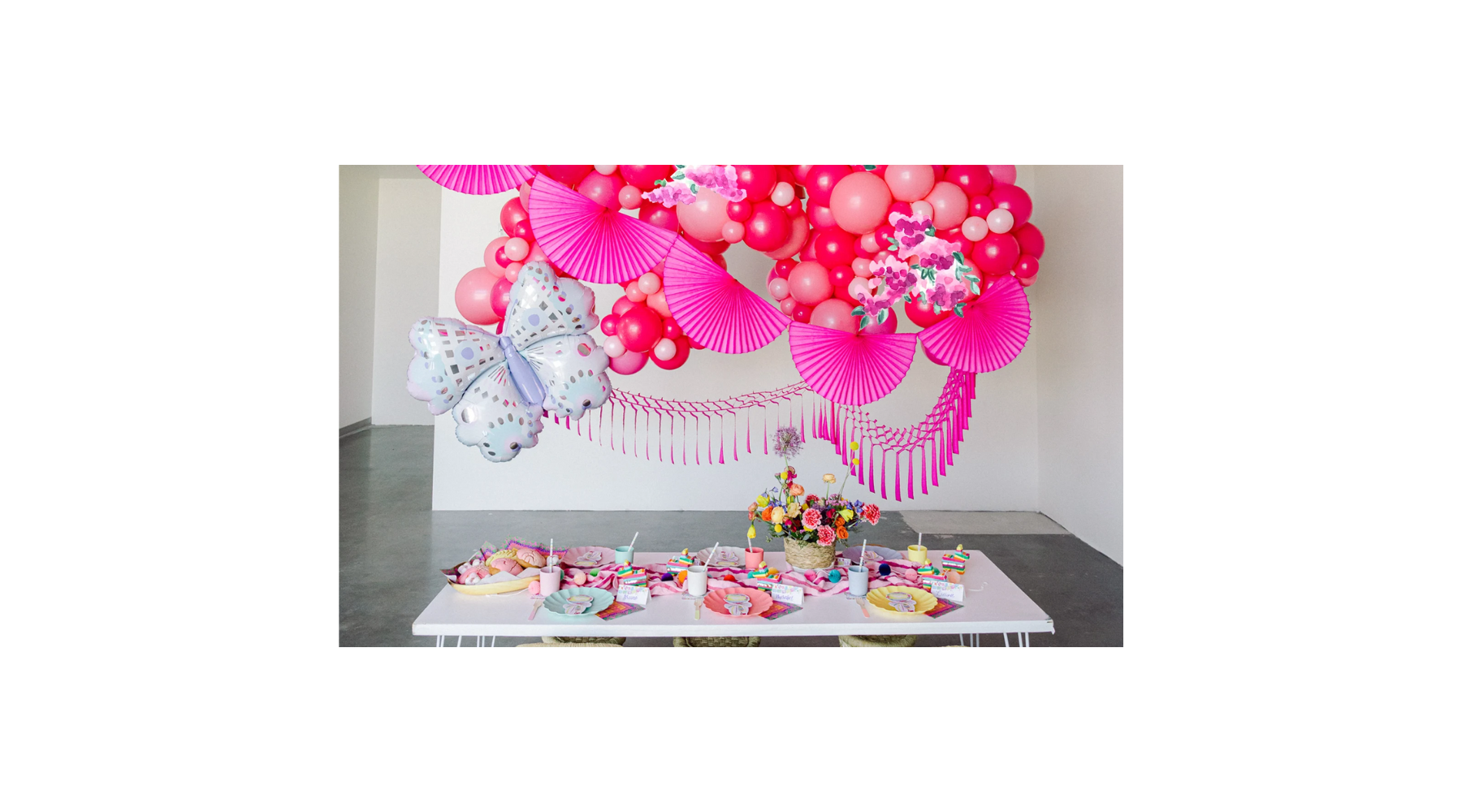 A proper Encanto party calls for lots of fiesta party supplies. Luckily, we’ve got lots of options to choose from. For decor, we went with a brightly colored balloon garland that is reminiscent of the Bougeuvilla adorning Casita, and layered a few cerise paper garlands throughout.