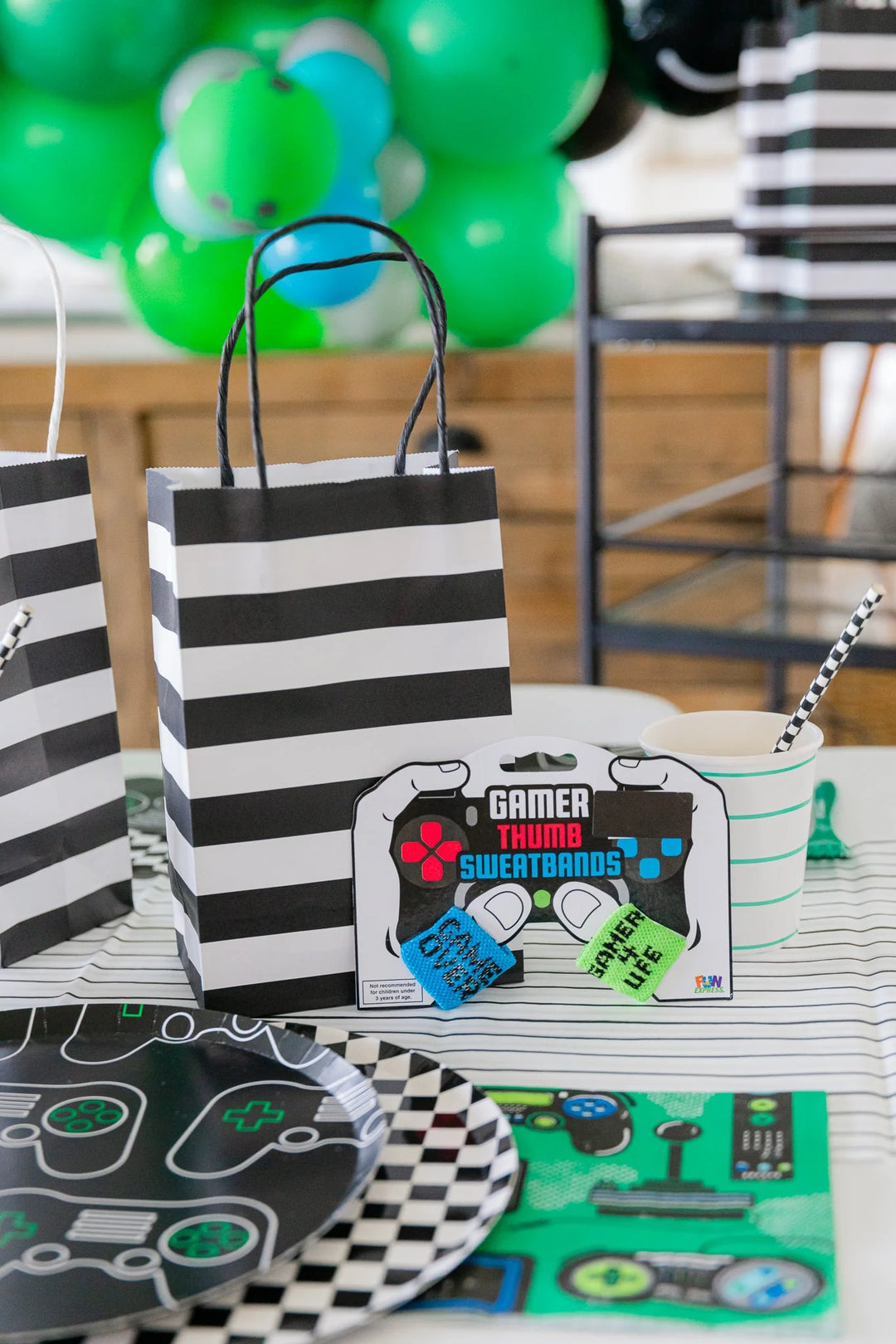 Speaking of awesome game themed supplies, check out these video game controller napkins! Perfectly sized for snacking, they'll make gaming nights (or days!) and gamer birthday parties extra special. These video game paper cups feature pop-out controllers and make everyone feel like a winner. We are also all about incorporating modern patterned supplies like checkered plates and napkins in coordinating colors.