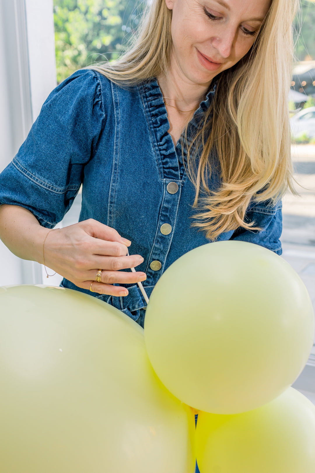 We love combining 5", 11", and 17" balloons, mixing solids with specialty prints or foils for added texture and visual interest. - Balloon hand pump or electric inflator