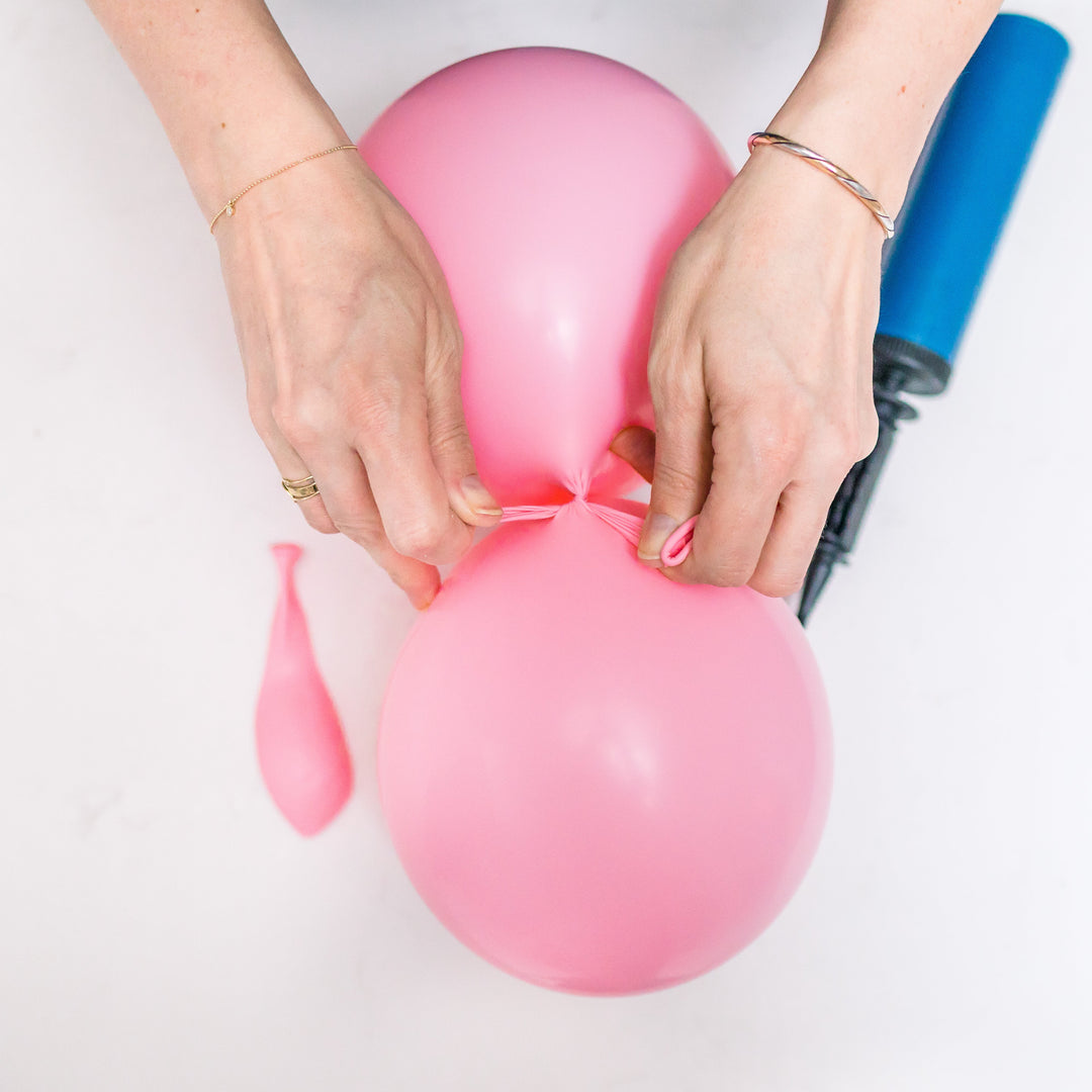 Inflate two balloons to your desired size (we recommend mixing sizes for that fun, layered look). Then tie the necks of the two balloons together to form a pair—this is your duplet. - Step 2: Create a Quad