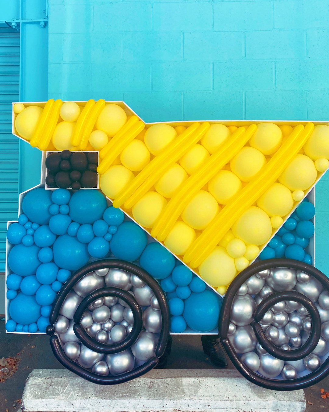 Balloons are essential for construction birthday parties, and you can never go wrong with a bold balloon mosaic. This DIY dump truck balloon decoration would make an excellent addition to any construction-themed celebration. We recommend pairing it with this coordinating banner to create a brilliant birthday backdrop.