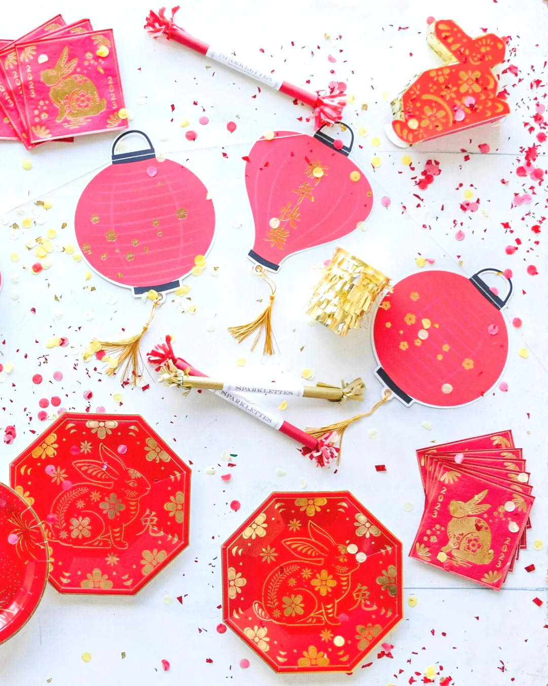 Set the tone for a night of joy and prosperity by creating a lively atmosphere. We suggest choosing vibrant red and gold party decorations. Red and gold are the traditional colors of Chinese New Year and symbolize good fortune!