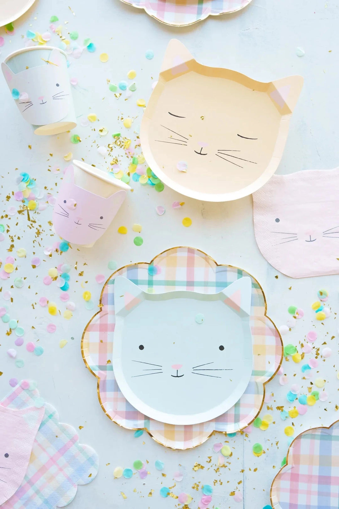 If your little one is more of a feline fiend, they'll adore these cat-themed party plates, cups, and napkins.