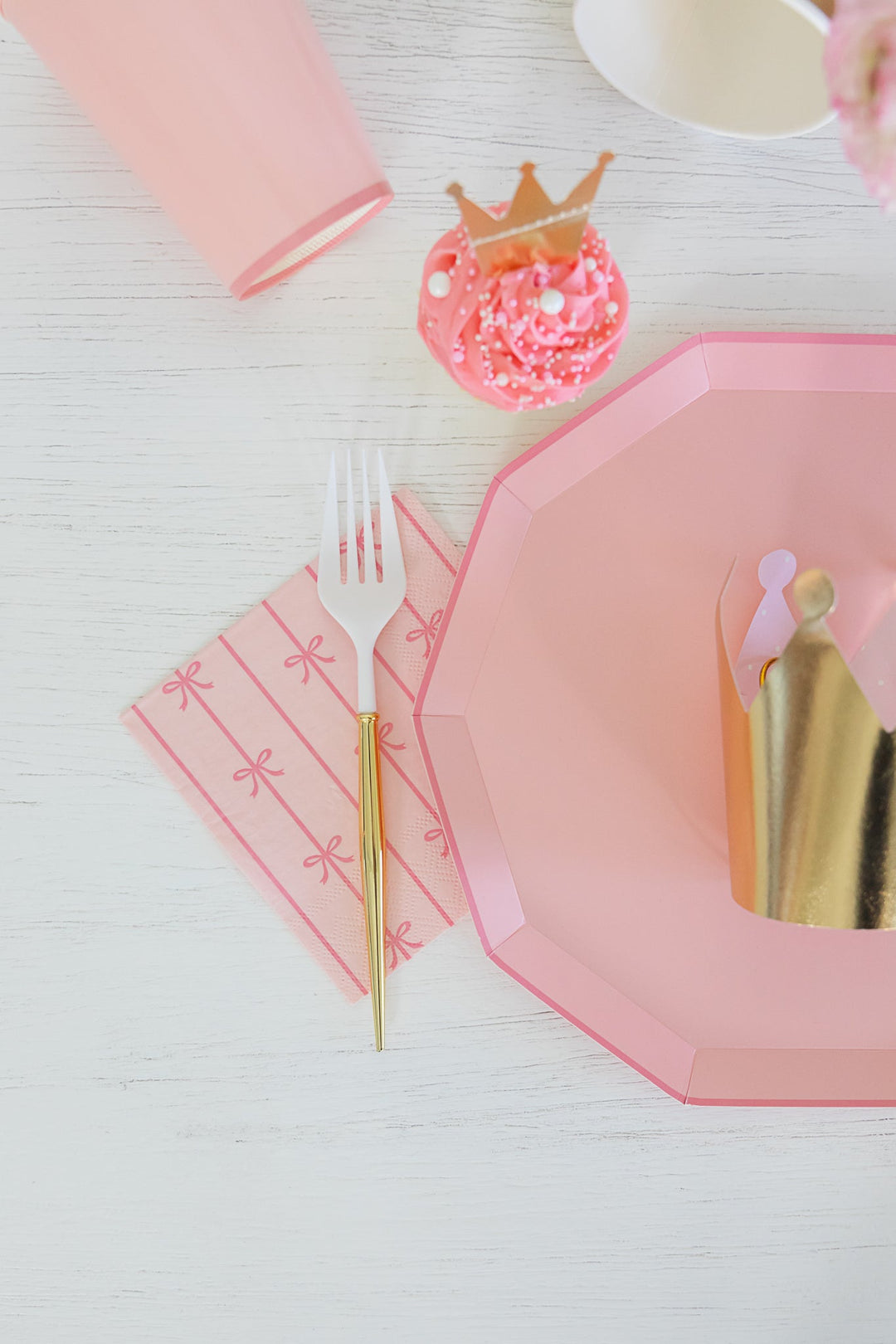 For a totally popular Glinda place setting, use our Petal Pink Signature Dinner Plates, Cups, and Bow Napkins. If you want more dimension, swap in our Petal Pink Cabana Stripe Plates like @magic4cora did here. Feel free to add some gold accents with the cutlery and party favors. (Thank goodness for these mini gold crowns!)