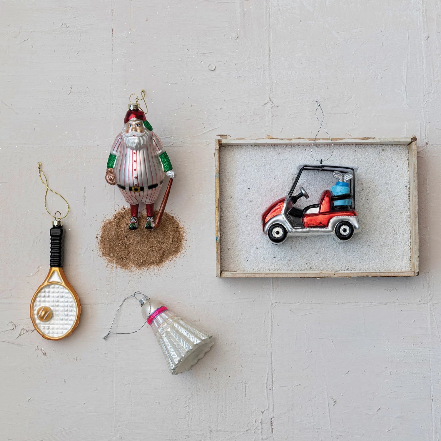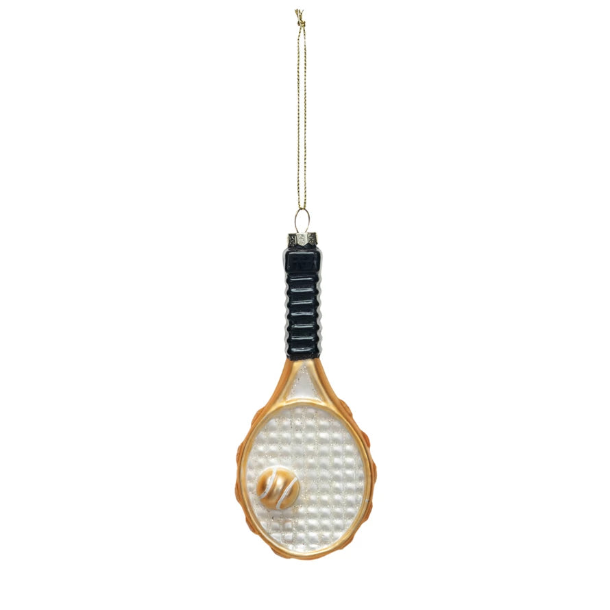 GLITTER TENNIS RACKET ORNAMENT Creative Co-op Christmas Ornament Bonjour Fete - Party Supplies