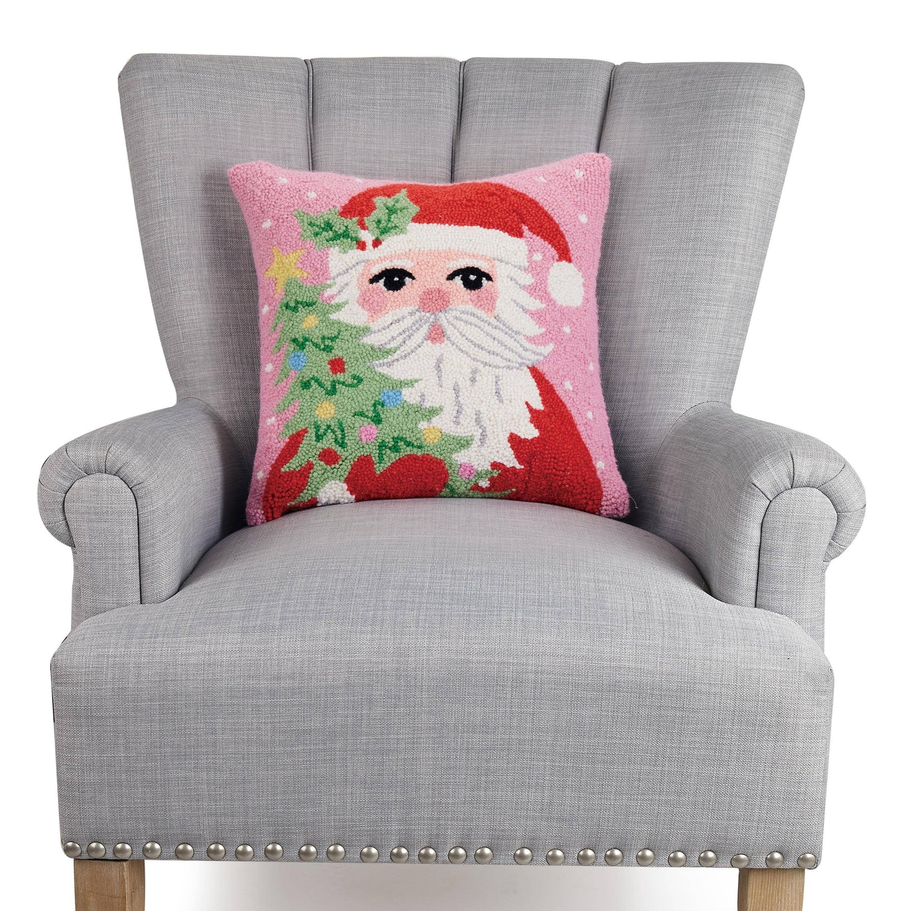 Add a touch of holiday cheer to your home with this Santa & Tree Hook Pillow! This festive and charming holiday decor features a jolly Santa holding a tree, adding a playful and festive touch to any room. Perfect for snuggling up with or displaying on your couch, chair, or bed.