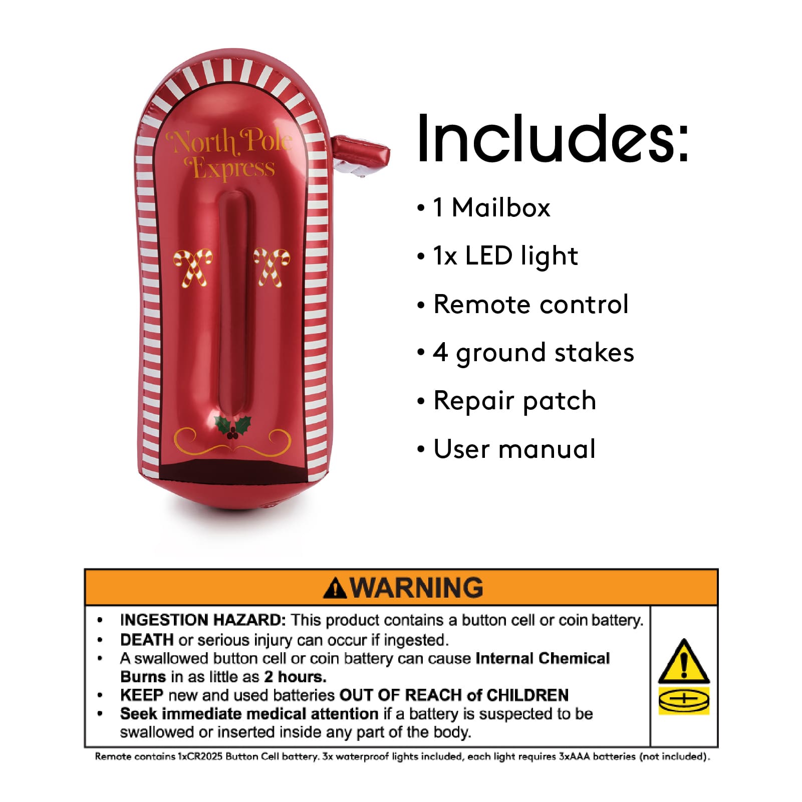 Make the holidays magical with FUNBOY’s oversized Inflatable Santa’s Mailbox! Standing over 3 feet tall, this festive inflatable creates a whimsical centerpiece for your holiday décor. Designed with a real slot so families can place letters to Santa, it’s the ultimate interactive Christmas decoration. Built with durable, weather-resistant materials, Santa’s Mailbox inflates quickly, secures easily with ground stakes, and deflates compactly for storage. A perfect way to bring joy and holiday cheer for the whole family.