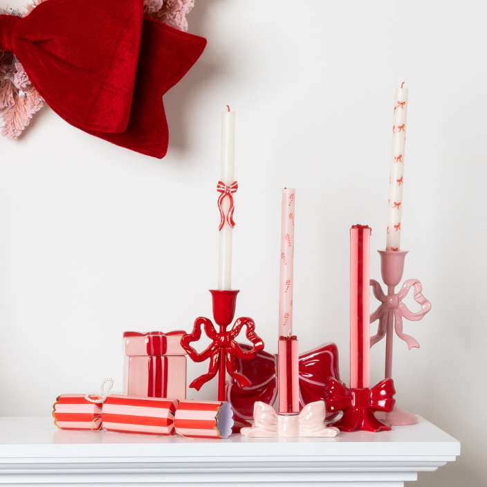 This cheerful ceramic Pink & Red Gift Box Canister has a dimensional, hand-painted red bow on top. This food-safe, lidded box deserves a focal spot on the kitchen counter and looks perfect as a pair. Store peppermints, tea, cookies, or any favorite holiday goodie inside for a sweet storage option now and all year long.