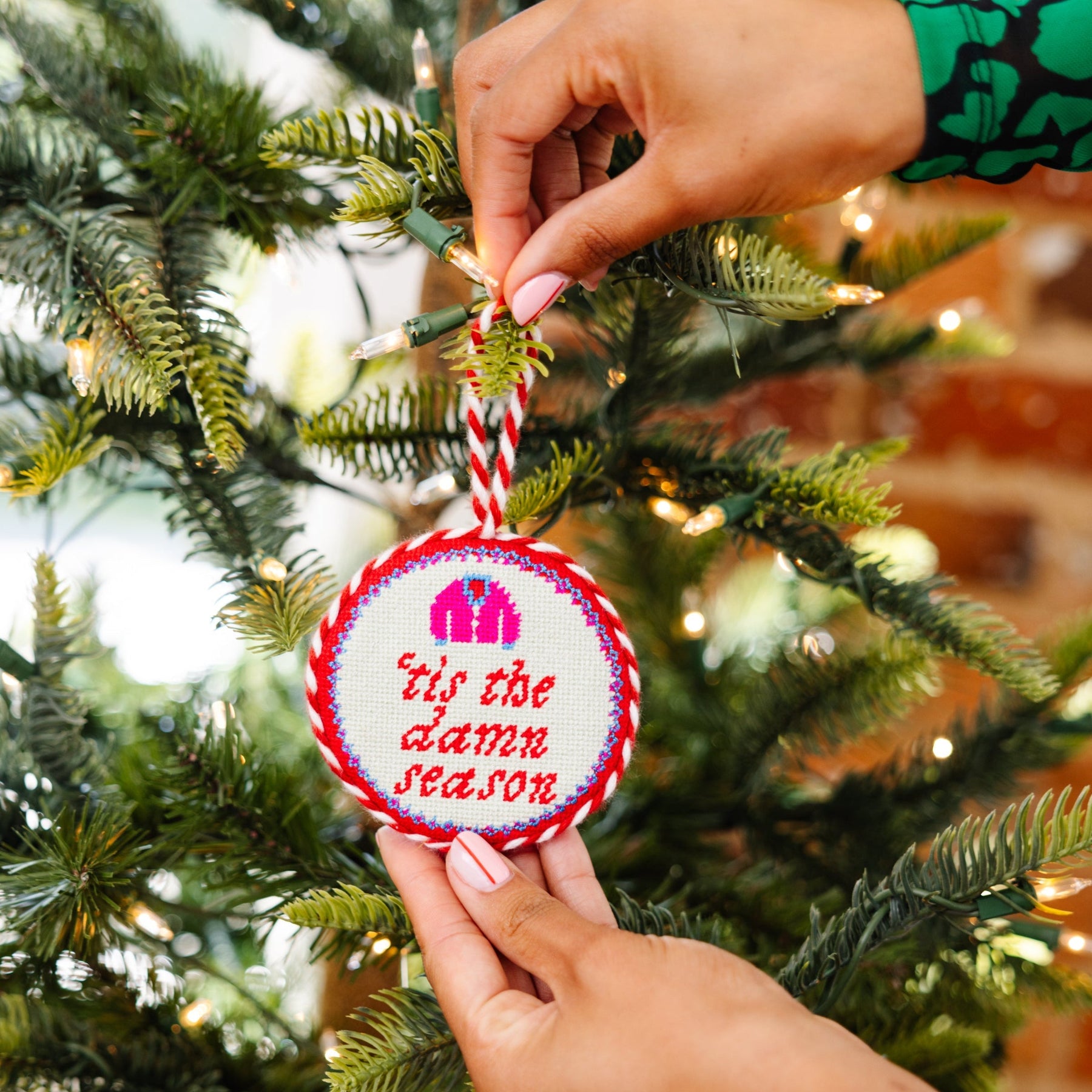Whether you’re feeling naughty or nice, the Tis The Damn Season Needlepoint Ornament is here to brighten your holiday celebrations. This charming ornament, backed in luxurious velvet, brings a delightful twist to a Southern staple with witty sayings that are sure to elicit smiles from all who see it.