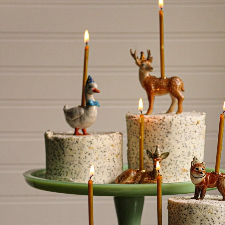 The best party guests come dressed to impress. Clad in a charming blue bowtie and matching cap, this new Blue Goose Birthday Candle Holder by Camp Hollow aims to be the belle of the ball at all of your future celebrations. Brining a touch of whimsy and a ton of cuteness to all of birthday cakes, Easter celebrations, and culinary creations, the Goose Cake Topper is a must-have for kid's parties and grown-up soirees alike. Playfully designed and cheerful in spirit, the Blue Goose Birthday Candle Holder is a surefire way to put a smile on anyone's face. When the candle is lit and the warm glow illuminates the figurine's porcelain features, you'll feel transported to a warm and inviting atmosphere where birthday wishes always come true.