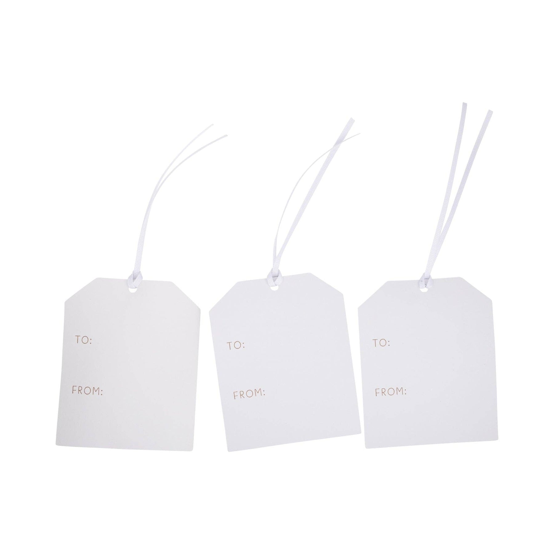 > Includes 12 Tags with glitter and ribbon, 4 each of 3 unique designs