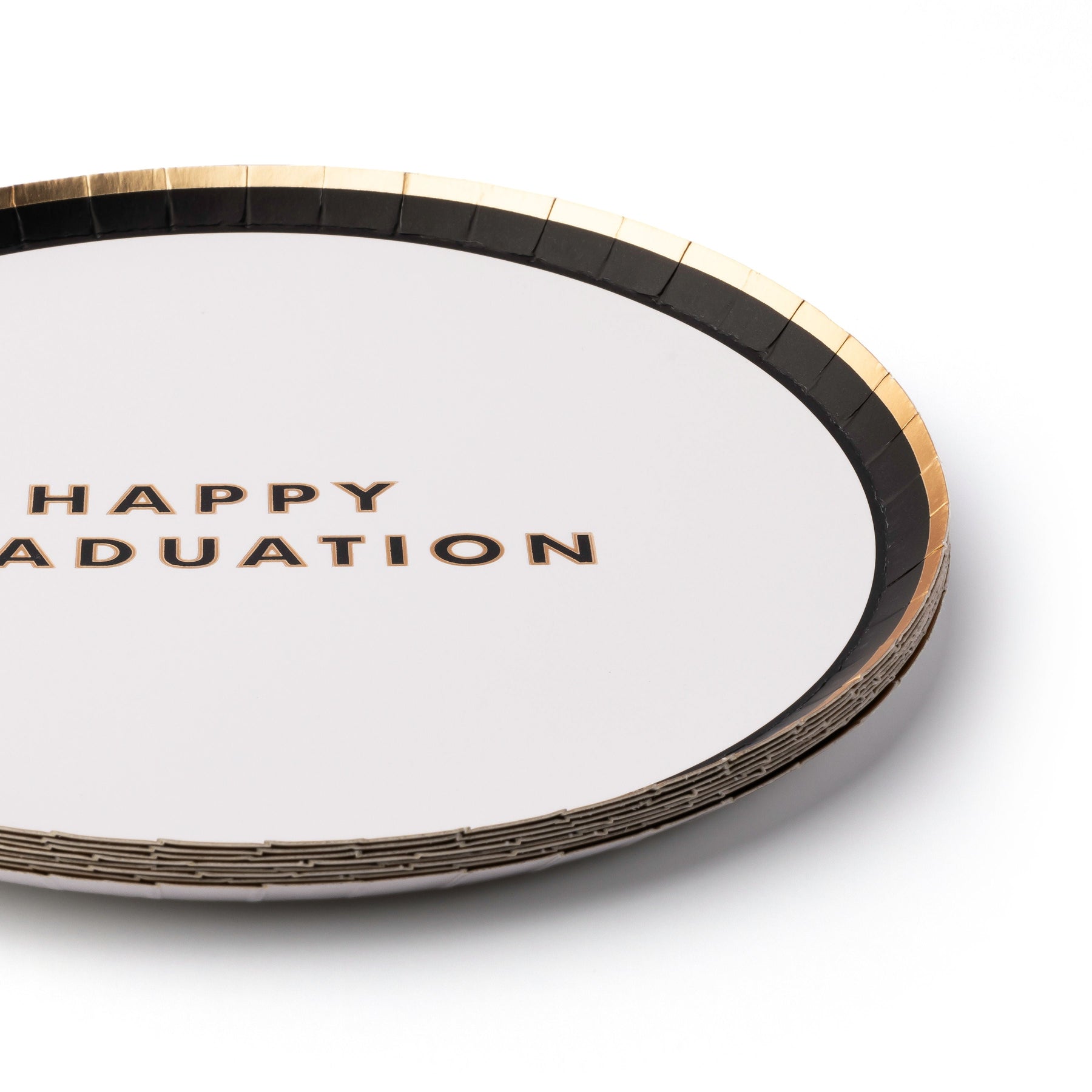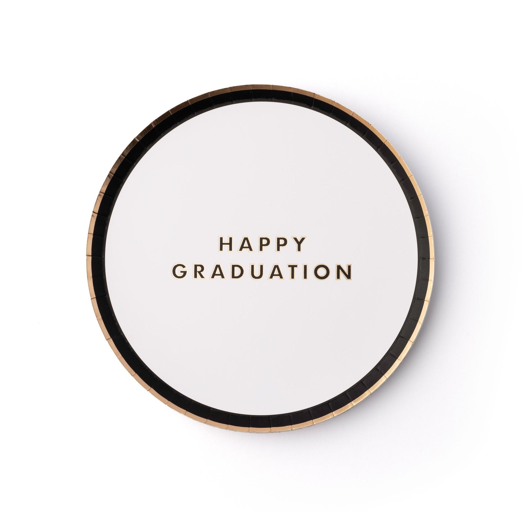 Celebrate your graduate in style with these chic Happy Graduation Snack Plates featuring a sleek black, white, and gold foil design. The contemporary font combined with shimmering gold accents brings a refined elegance to any gathering. Crafted from sturdy disposable material, they’re perfect for serving everything from appetizers to treats, pleasing guests of all ages. Complete your festive table by matching them with the Congrats Grad Cocktail Napkins for a memorable party setup that will wow everyone.