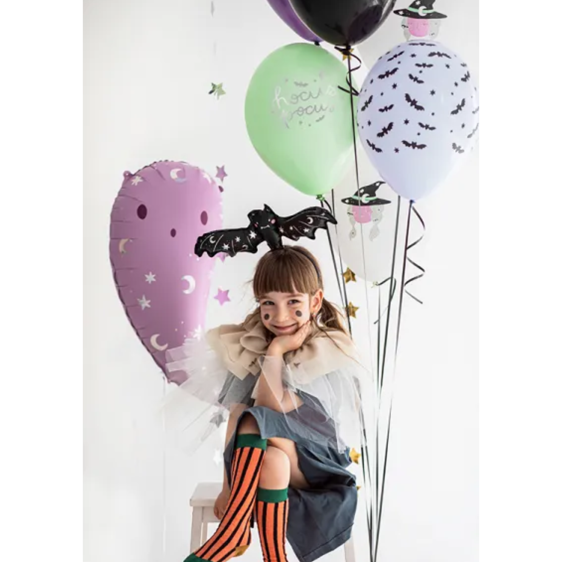 Add a spooky to your next Halloween party with this Halloween Black Bat Balloon! Featuring holographic details of moons and stars, this balloon is a fabulous Halloween decoration on its own, or layered with other Halloween balloons!