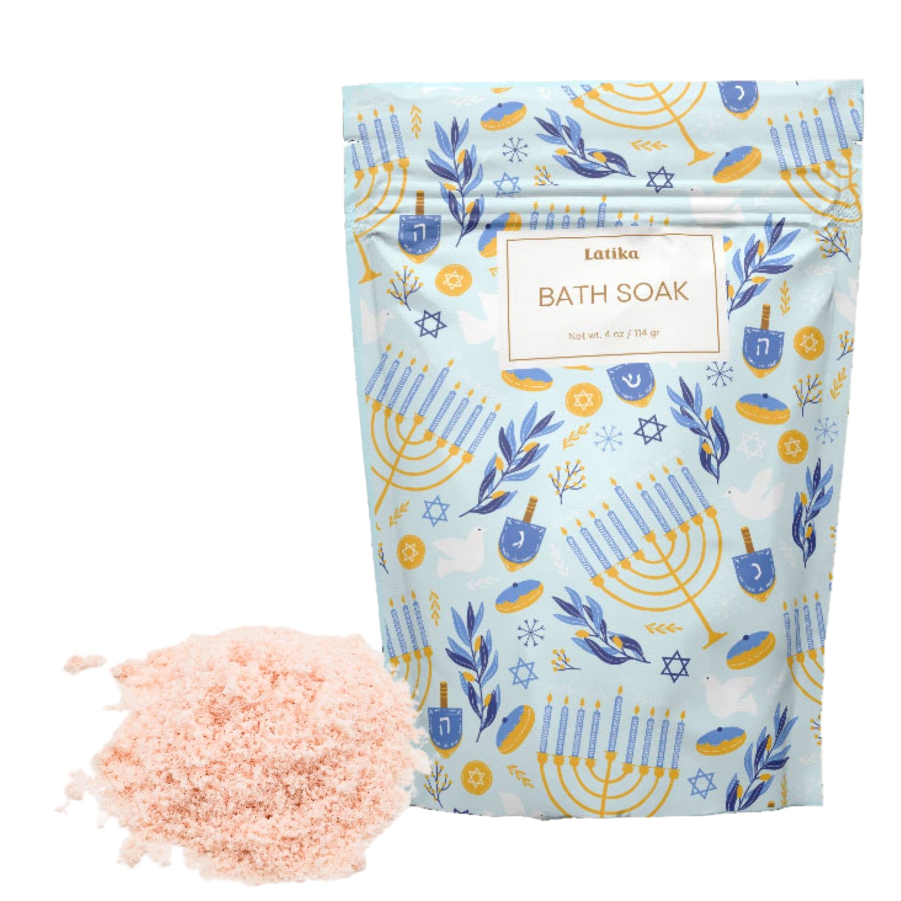 Experience a fizzy, rejuvenating soak with this Strawberry Vanilla Hanukkah Bath Soak! Infused with Epsom salt, coconut milk, and moisturizing oils, it leaves your skin feeling soft, radiant, and refreshed. Indulge in the delicious scent of sweet strawberry and vanilla for a truly enchanting bath. One 4 oz. bag provides a generous single-use amount. It makes the perfect Stocking Stuffer or holiday gift for girls!