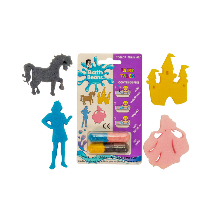 Experience the magic of these Fairy Tale Bath Beans! These food-grade gelatin capsules contain not one, but two sponge toys that come to life in warm water. Each pack includes two jumbo capsules, with two adorable sponge characters in each. And you can rest easy knowing there are no harmful essential oils or fragrances - just safe and fun food-grade ingredients for kids. This fun bath accessory would make a wonderful addition to an Easter basket!