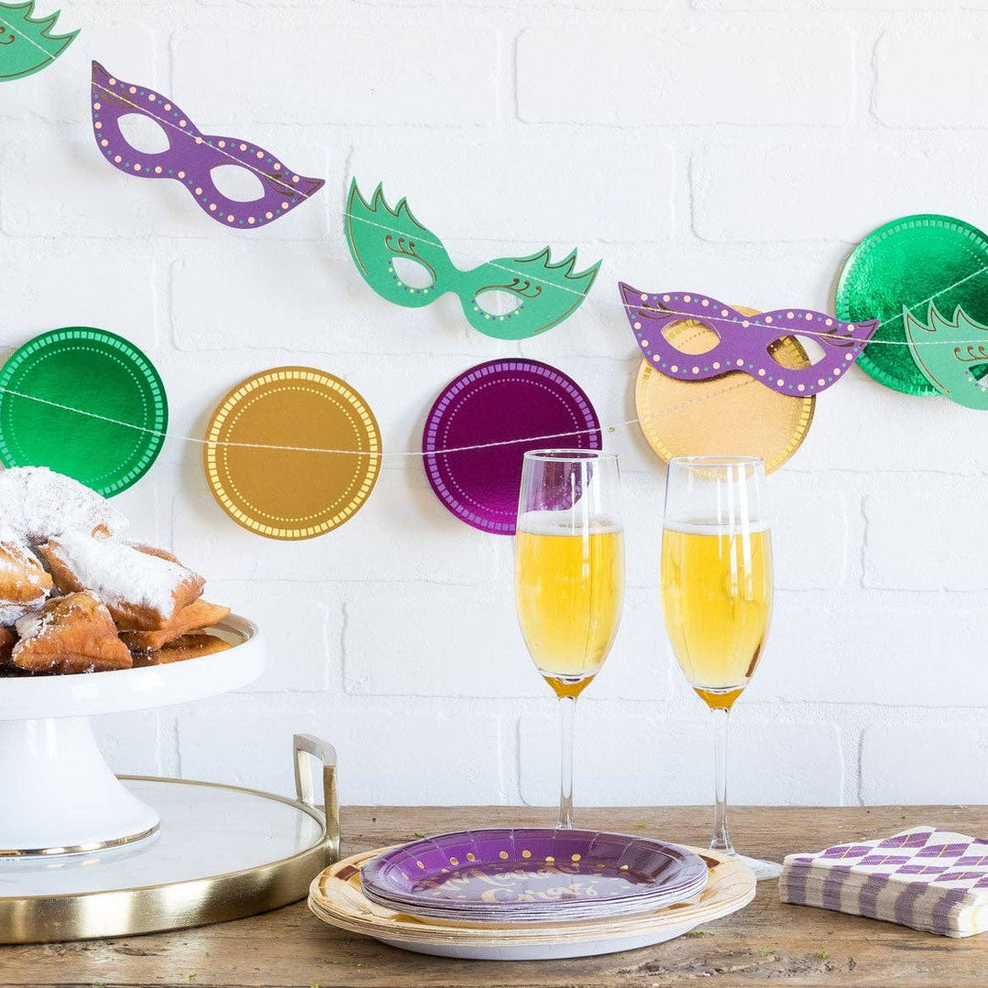 Celebrate Mardi Gras with with a banner full of colorful doubloons! Inspired by one of the popular Mardi Gras keepsakes, this Mardi Gras Coin Banner will bring the spirit to any festive Mardi Gras party. Make the selfie station the place to be by hanging this colorful banner as part of a photo wall and accessorize with our Mardi Gras inspired photo props.