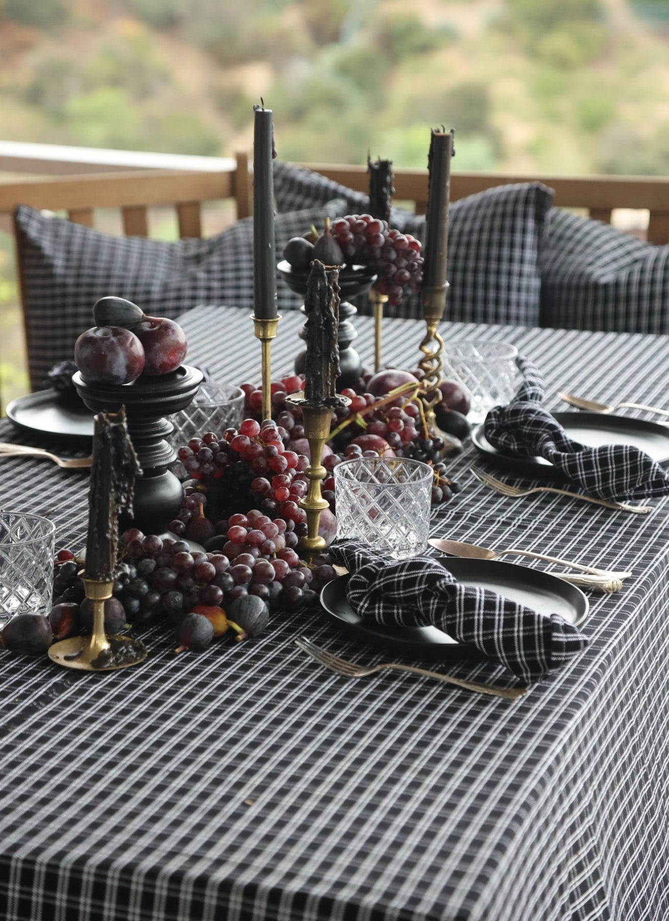 Set a stylishly spooky table this season with our Harrison Plaid Black Tablecloth by Heather Taylor Home, the perfect backdrop for Halloween gatherings. Its bold black-and-ivory plaid pattern adds a sophisticated edge to your festive spread—pair it with deep orange napkins, rustic candles, and seasonal florals for a look that’s more chic than scary.