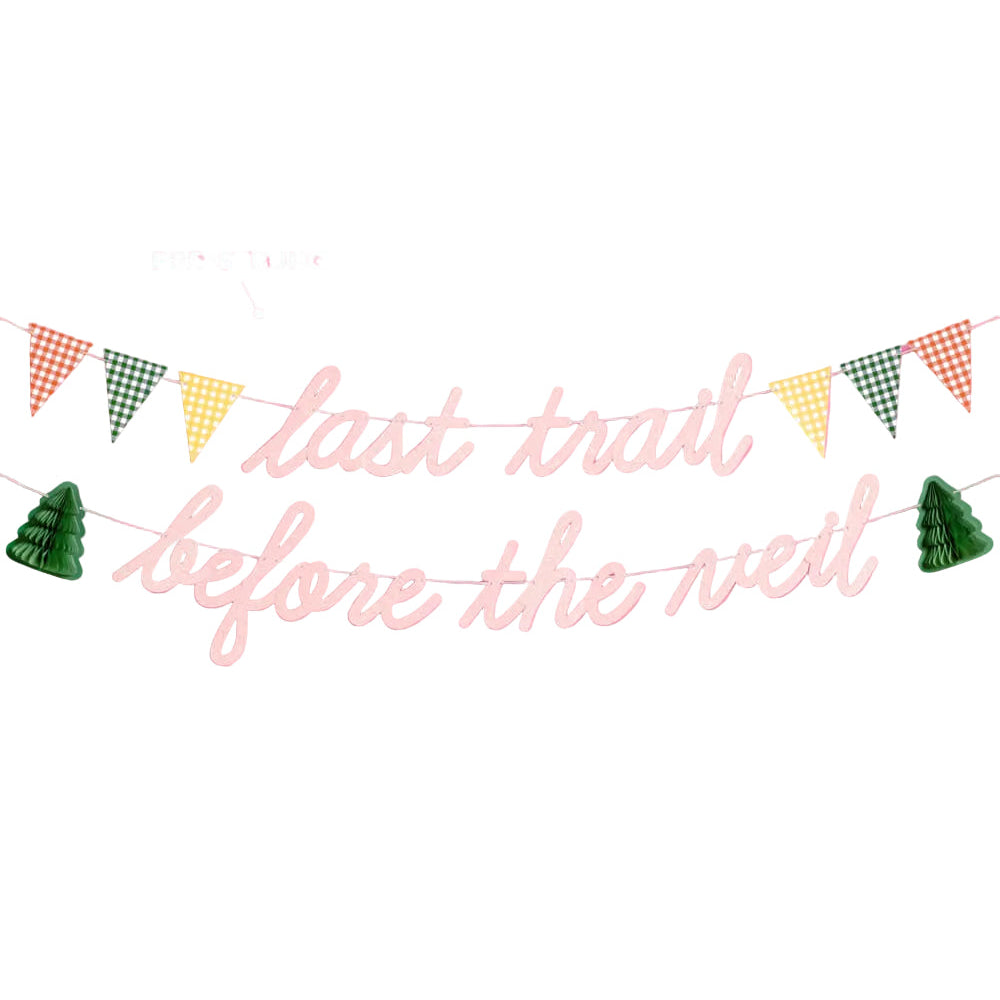 Celebrate the final adventure before saying "I do" with this eye-catching Last Trail Before The Veil Banner. Ideal for outdoor bachelorette parties, hiking-themed celebrations, or adventurous bride send-offs, this banner adds a playful touch to any pre-wedding gathering. Perfect for photo ops and decorating your campsite, cabin, or trail entrance. Make memories on the last wild adventure before the big day!
