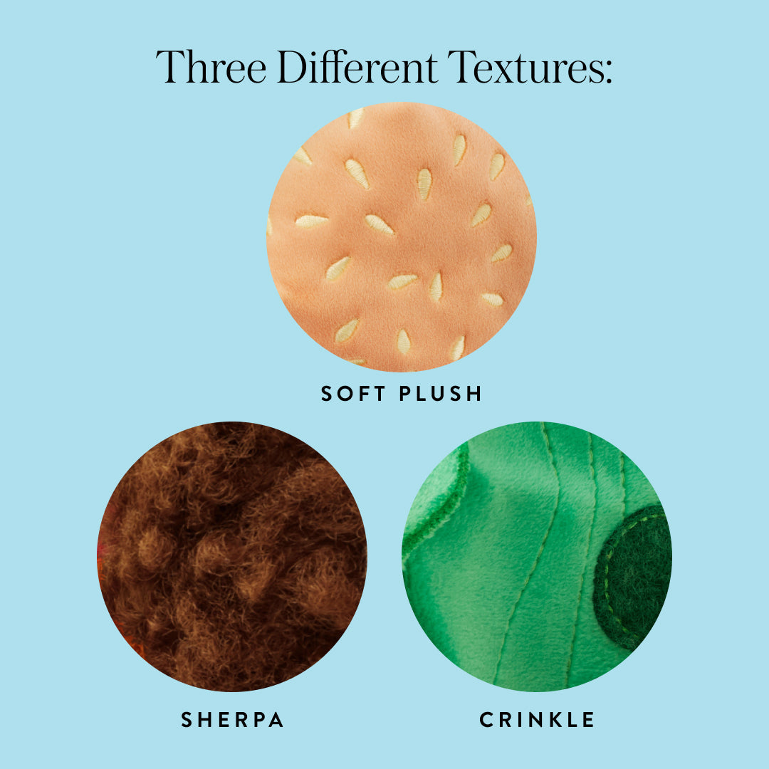 • Design: Food-inspired interactive plush set