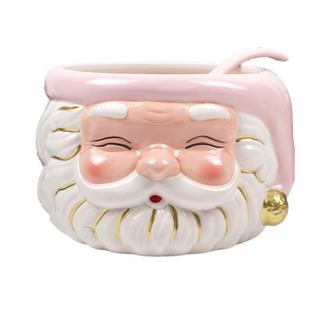 Gather your friends for a special holiday treat! This Pink Santa Punch Bowl With Ladle is the perfect addition to a festive gathering. With its sweet pink design, it's sure to add to the holiday magic!