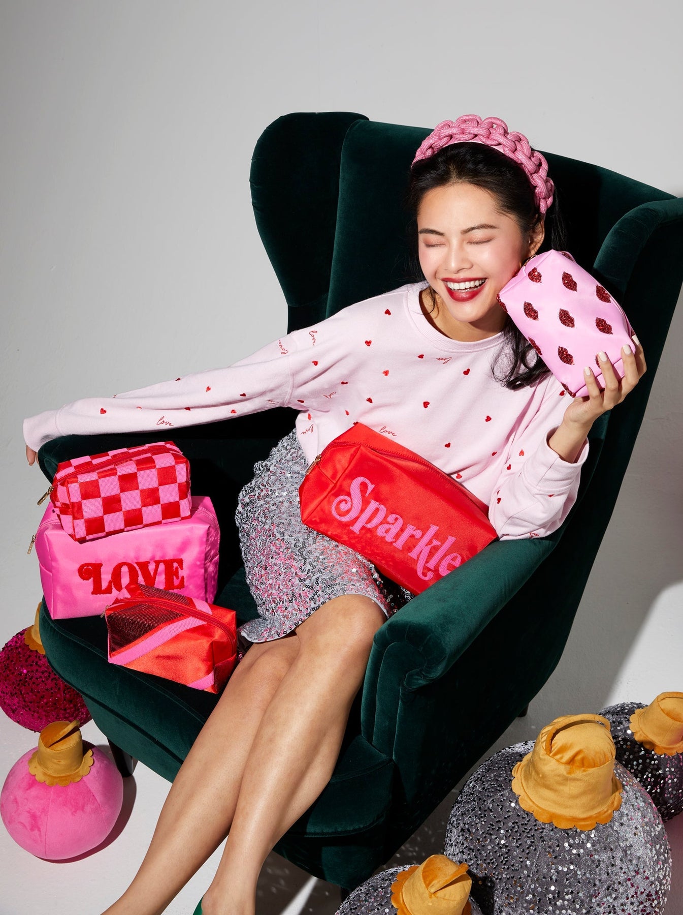 Store your odds and ends with this Cara Lips Cosmetic Pouch. This compact case features a funky lips pattern in sequins, adding texture and a fun detail to this essential-carrier. Measuring L 7" × W 3" × H 4" and made from polyester, the Cara Lips Cosmetic Pouch is perfect for holding your makeup, toiletries, and other small items either in a vanity drawer at home, or on the go. Pair with other items from Shiraleah collection to complete your look!