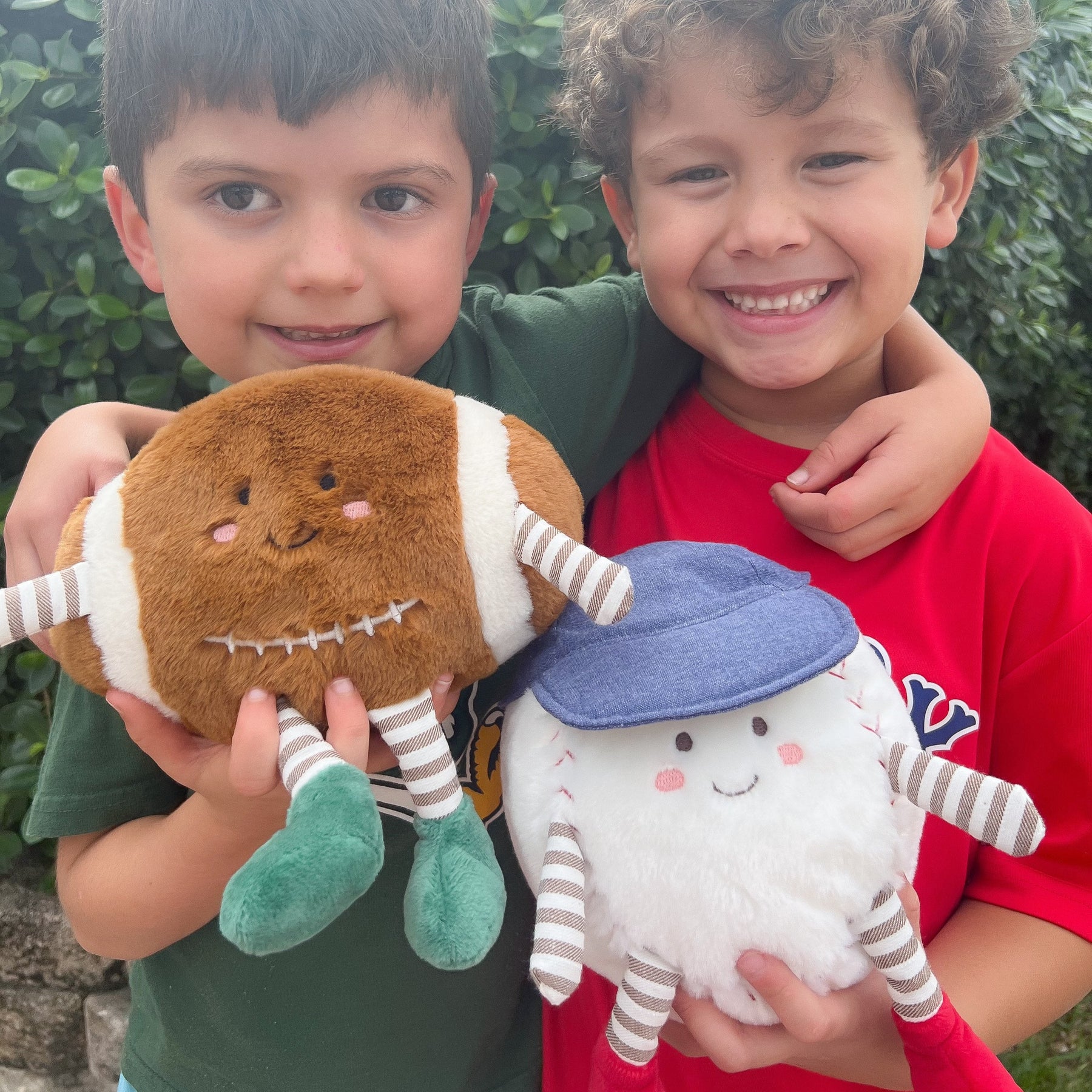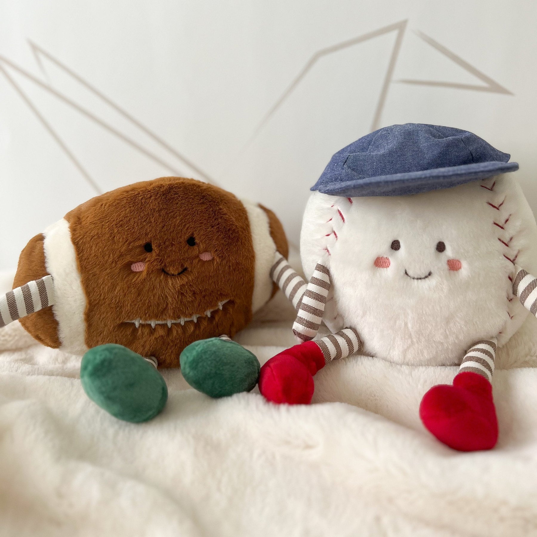 Meet Freddie Football Plush Toy by Mon Ami, the cuddliest MVP of the game! With his super soft, textured brown fur and signature white stitching, Freddie puts a snuggly spin on classic football fun. His cheerful embroidered face, complete with rosy cheeks, brings playful charm, while his striped arms and legs, topped with green plush sneakers, have him ready to score big in both playtime and snuggle time. Whether he's the star of an imaginary touchdown or a cozy cuddle buddy, Freddie Football is the perfect teammate for any little athlete's plush collection.