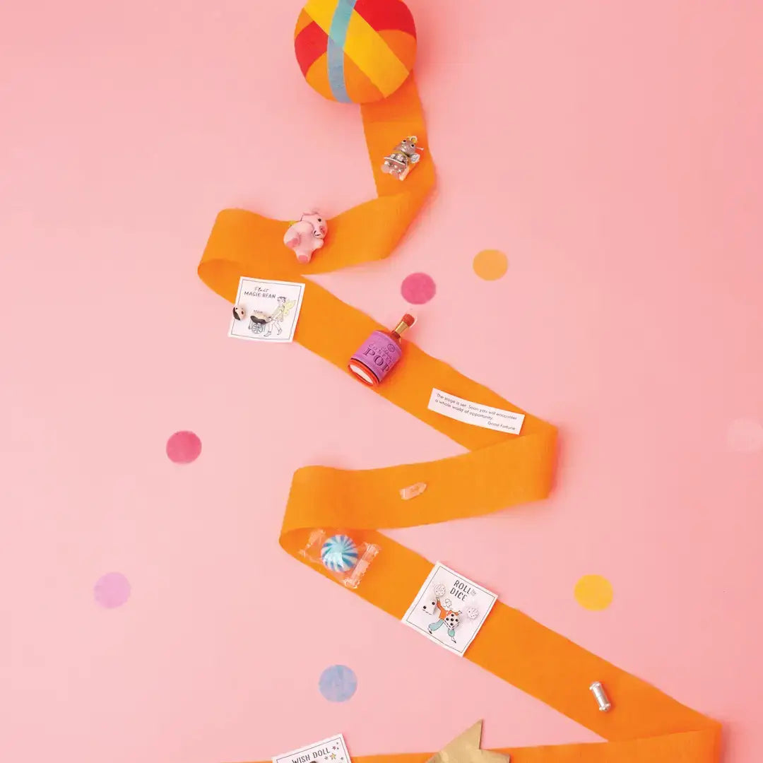 This Bon Bon Candy Mini Surprise Ball is perfect for hanging on your tree, putting in a stocking, or gifting to loved ones during the festive season. They also make great dinner party décor. Your guests or loved ones will unwind the colorful crepe paper ribbons to reveal a cascade of vintage-inspired toys, keepsakes, and surprises! Surprize Balls® are a cultural icon, created by TOPS in 1982, reminiscent of the popular toy craze from the 1950s. They are handcrafted, making each one a personal and unique piece. Each Surprise Ball contains an assortment of 6 delightful surprises. The exact contents vary by style and may include: gemstones or crystals, vintage-inspired toys, charms, sweets, crowns, temporary tattoos, Confetti Poppers, good fortune messages, And more!