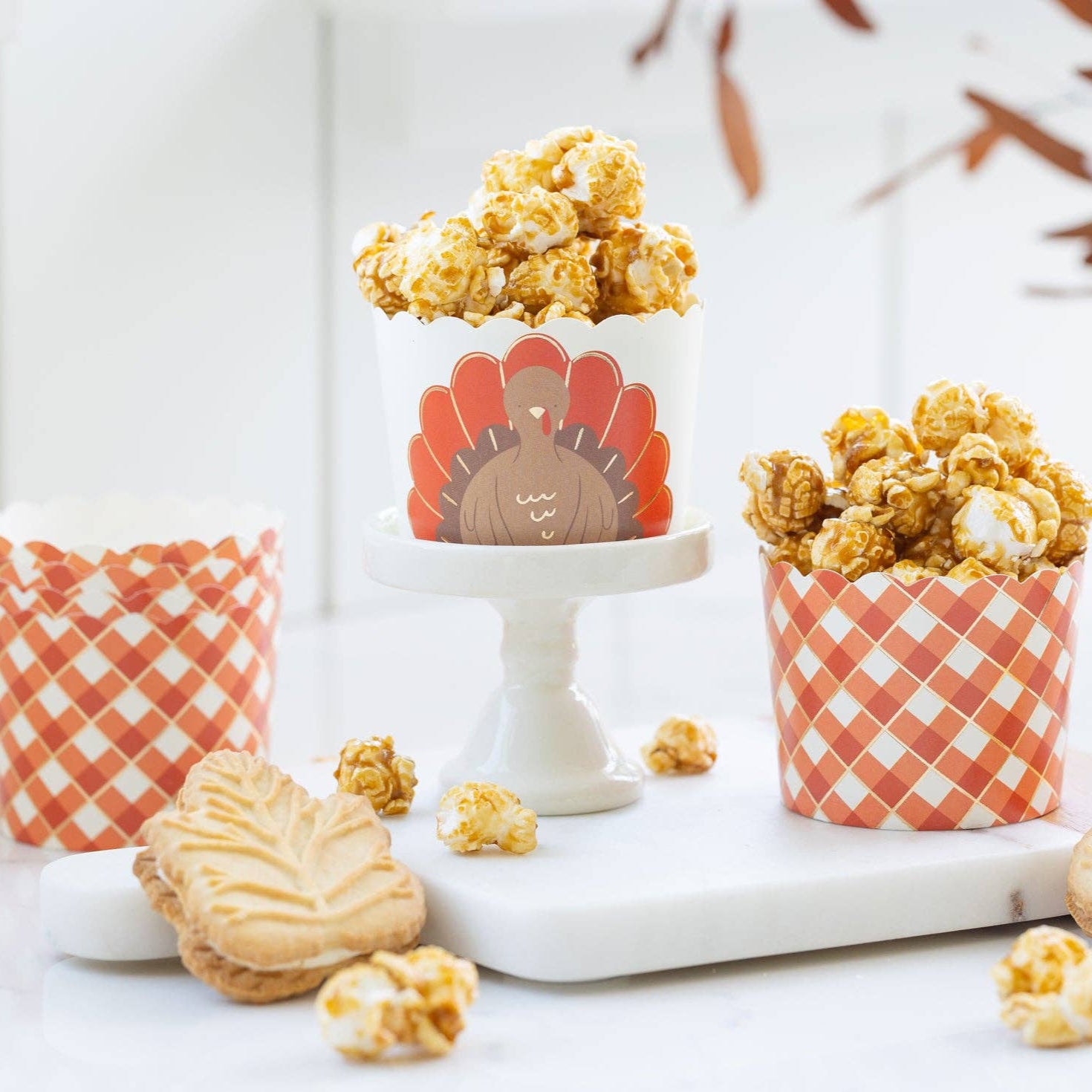 Serve up sweetness with the Foiled Orange Turkey Baking Cups. Just the right size for cupcakes or muffins, these charming baking cups feature a vibrant orange color and a delightful turkey design that brings holiday cheer to any gathering. Crafted to withstand high temperatures, they are durable and oven-safe, ensuring your creations come out perfectly baked every time. With these baking cups, there's no need for additional liners—simply bake, serve, and enjoy.