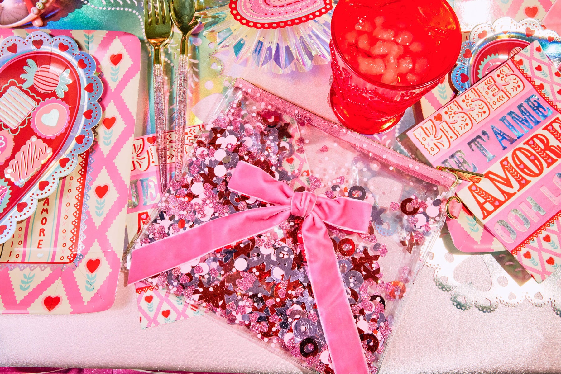 This XOXO Confetti Pouch is here to spread the love, filled with festive pink and red XO confetti! Use it to hold your makeup, date-night essentials, or little love notes—it’s the sweetest way to keep your things organized with a sprinkle of Valentine’s sparkle. Carry a little romance with you wherever you go and make every day feel like a celebration of love!