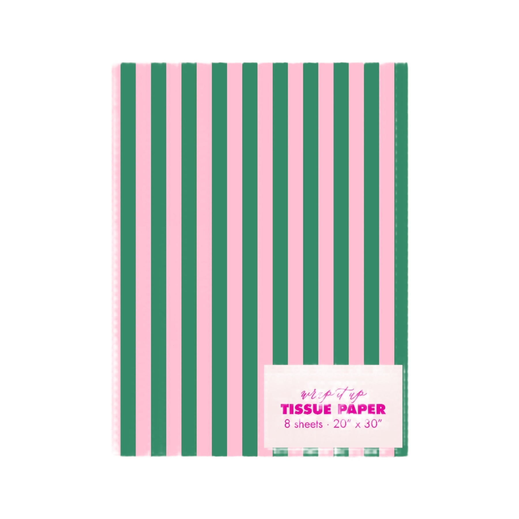 GREEN & PINK STRIPE TISSUE PAPER Rock Paper Scissors Gift Wrapping GREEN & PINK STRIPE TISSUE PAPER Bonjour Fete - Party Supplies