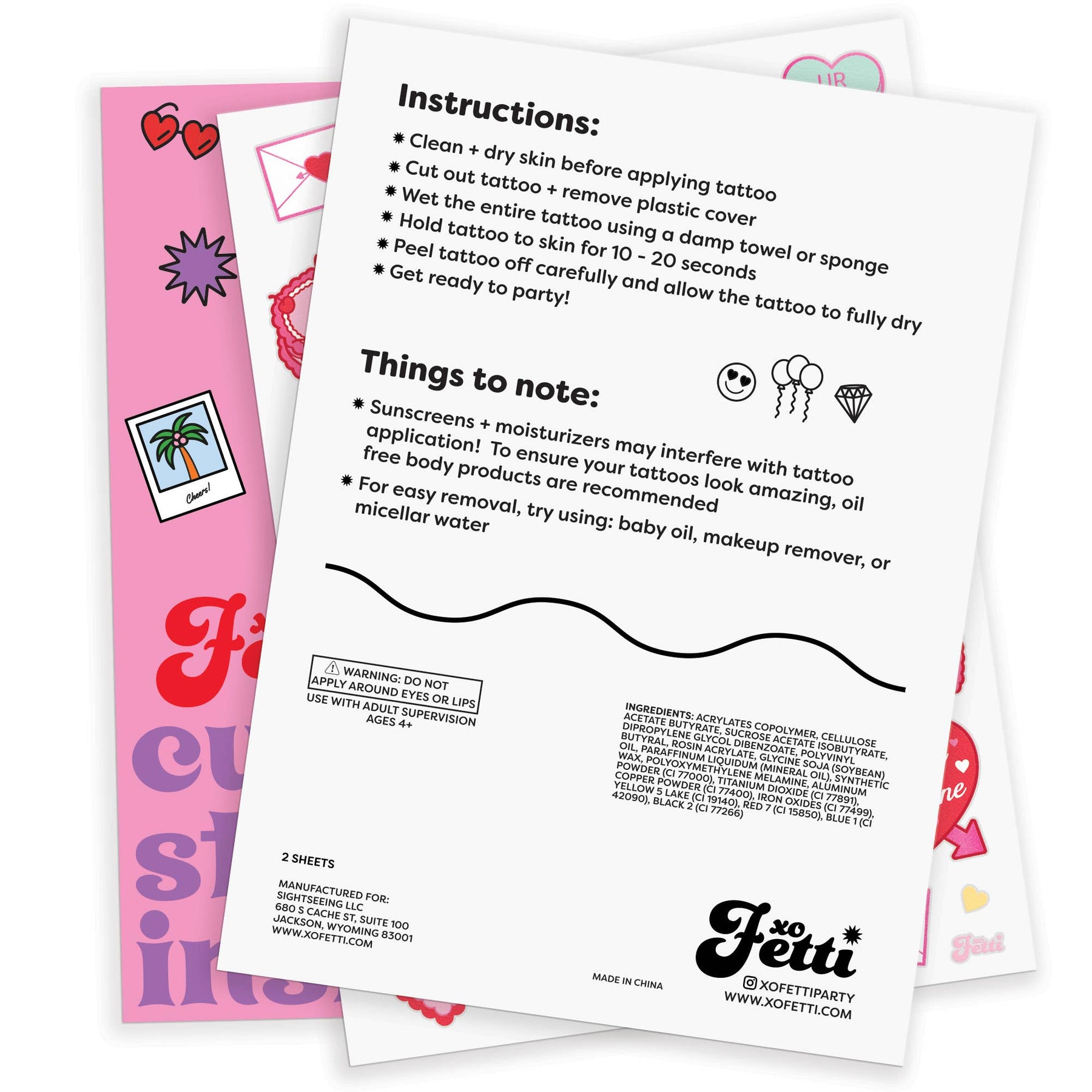 Valentines Day Temporary Tattoos, Galentines Heart Favors xo, Fetti Valentines Day Temporary Tattoos, Galentines Heart Favors Bonjour Fete - Party Supplies