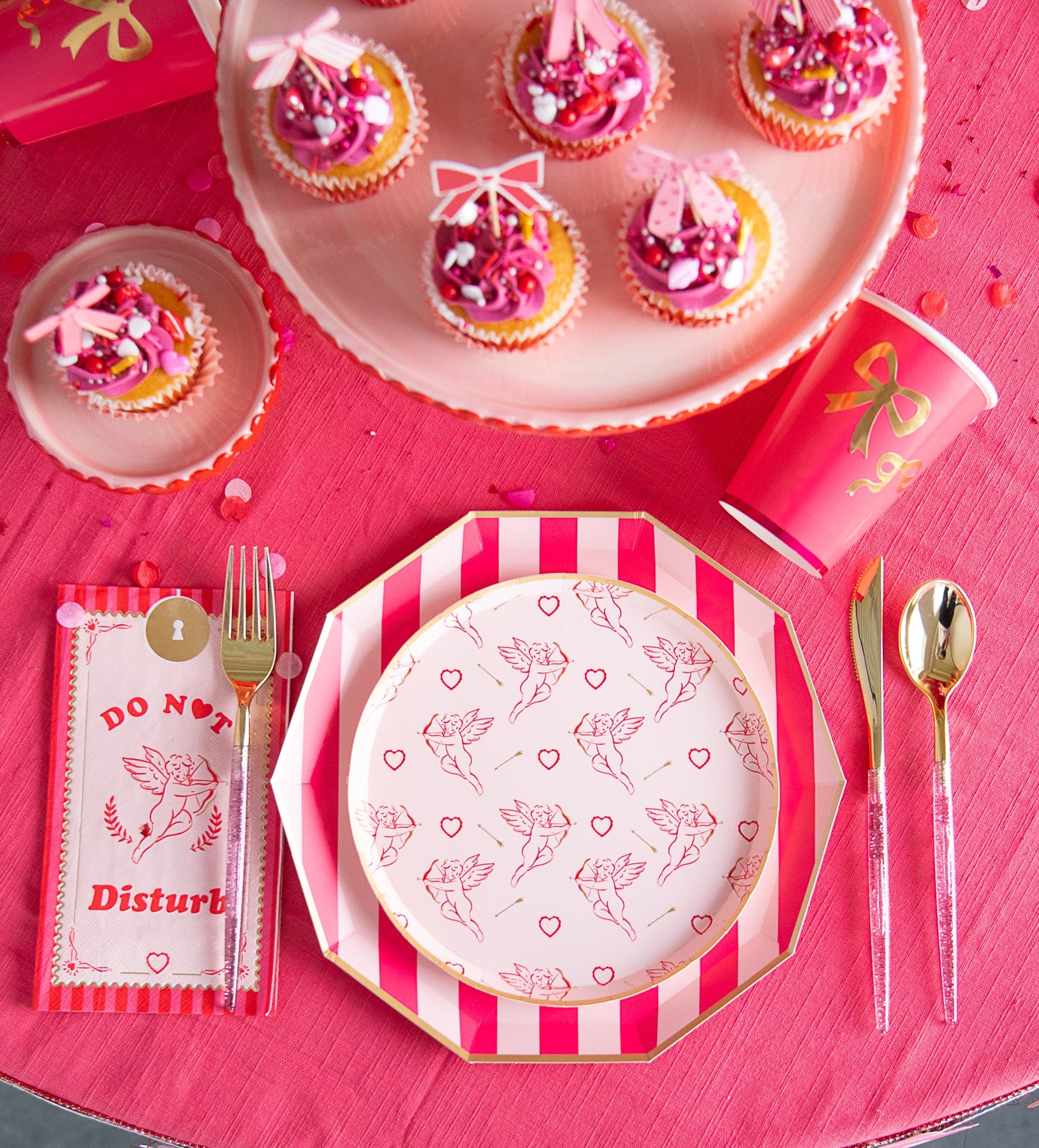 Our Cupid's Crush Do Not Disturb Guest Towels are perfect for a fun girls' night or Galentine's celebration. Adorned with a cute red cupid and a sassy "Do Not Disturb" message, they complement our Cupid's Crush Pink Small Plates beautifully. Celebrate love this Valentine's Day with this flirty and festive party touch!