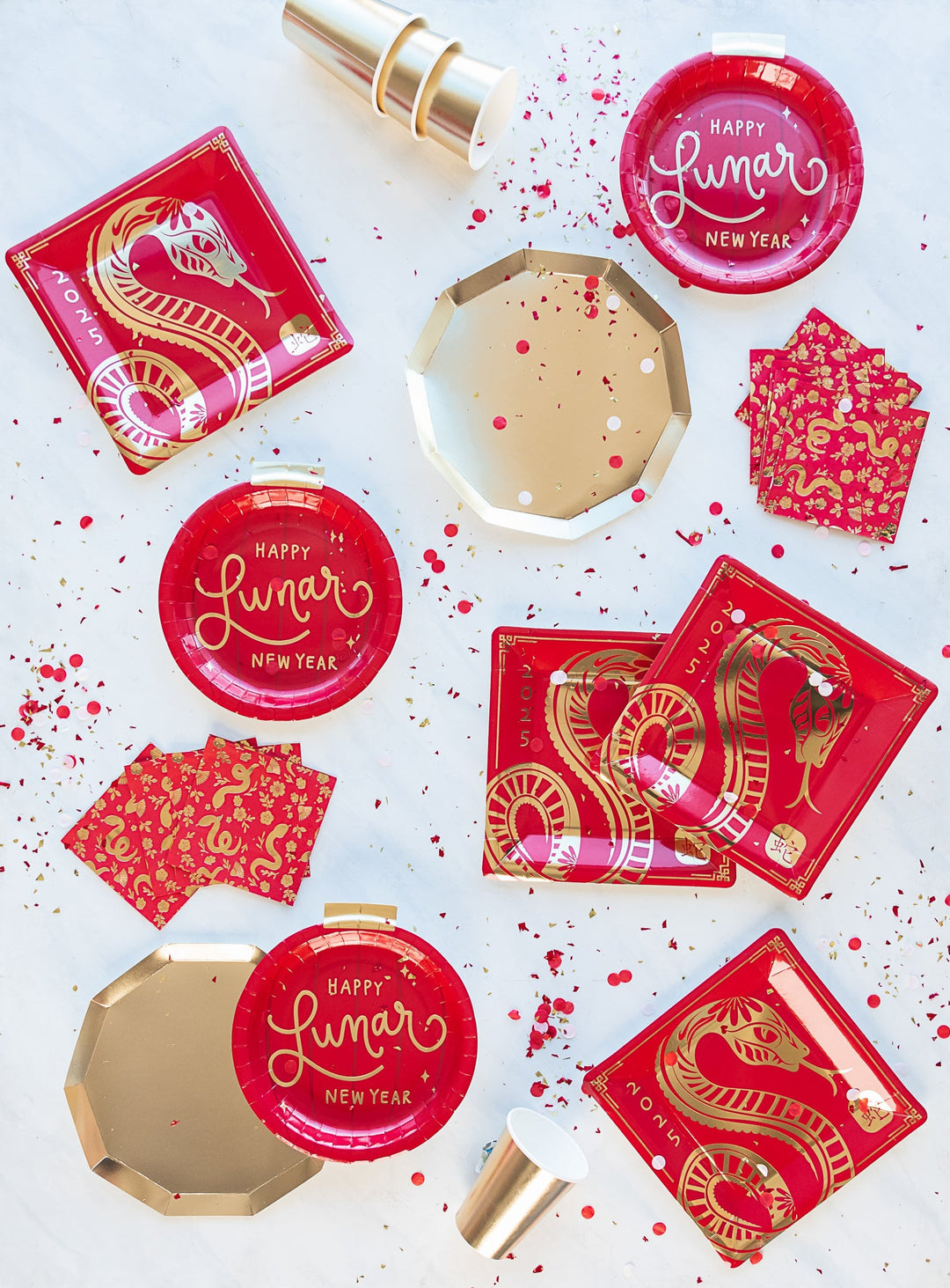 Bonjour Fête has all the Lunar New Year party supplies, party decorations, and good fortune you’ll need to throw a wonderful Chinese New Year celebration! Browse our selection of Lunar New Year decorations, like our Cherry Red Signature plates, and red paper lantern banners detailed with traditional Chinese calligraphy. And if you aren’t filling red envelopes with lucky money this spring festival, give your guests the gift of good luck with our Chinese New Year party favors!