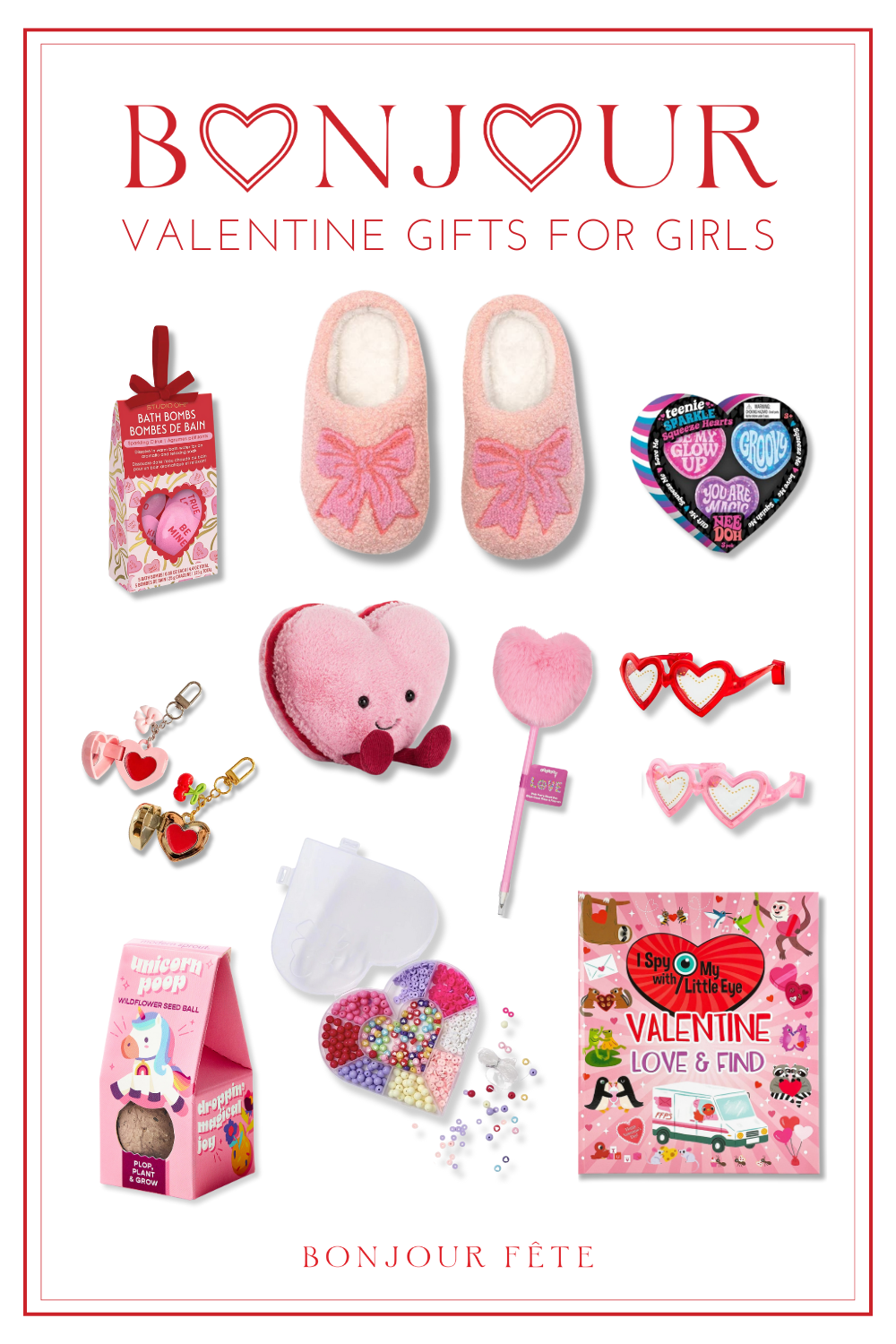 Find the perfect way to show your love this Valentine's Day with Bonjour Fête's 2026 Valentine's Day Gift Guide. Our fabulous selection includes gifts that fit every personality and budget, from trendy trinkets to classic Valentine's Day candy. Shop by gifts for girls, gifts for boys, gifts for Galentines, and even gifts for pets! Let our unique gift ideas inspire you to leave any sweetheart smitten and feeling truly loved.