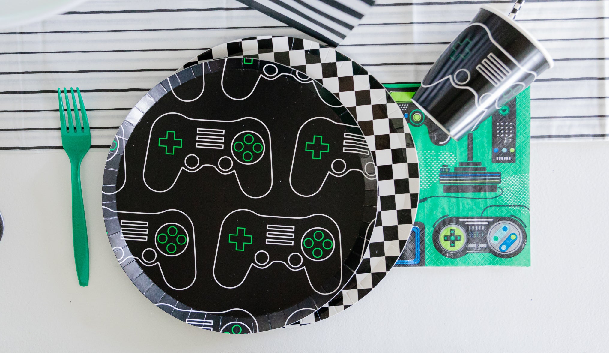 Searching for some exciting video game theme party ideas? Bonjour Fête has all of the best video game birthday party supplies and decorations to power up your party! Browse our collection of Minecraft theme party ideas, Fortnite party ideas, and Mario party ideas– perfect for any gaming boy’s birthday party. You’ll find an array of video game party plates, napkins, and cups featuring stripes, checkered patterns, and video game controller details. Not to mention a variety of thrilling video game theme decorations like DIY balloon garlands and “Level Up” party banners. Finally, don’t forget to assemble your “supply drops” and stock up on fun video game party favors your kids will love. Everything you’ll need to throw a game-winning birthday bash!