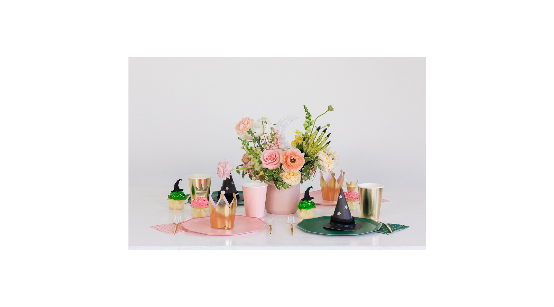 Start by capturing the magic of Oz with sparkly decor and thematic accents. Set the perfect Wicked-inspired party table with our Signature Petal Pink and Emerald Green plates, napkins, and cups. Create a magical gathering featuring witch hat party favors, witch hat banners, and honeycomb witch hats for a spellbinding soiree. Our collection has everything you’ll need to host an unforgettable Wicked-themed event!