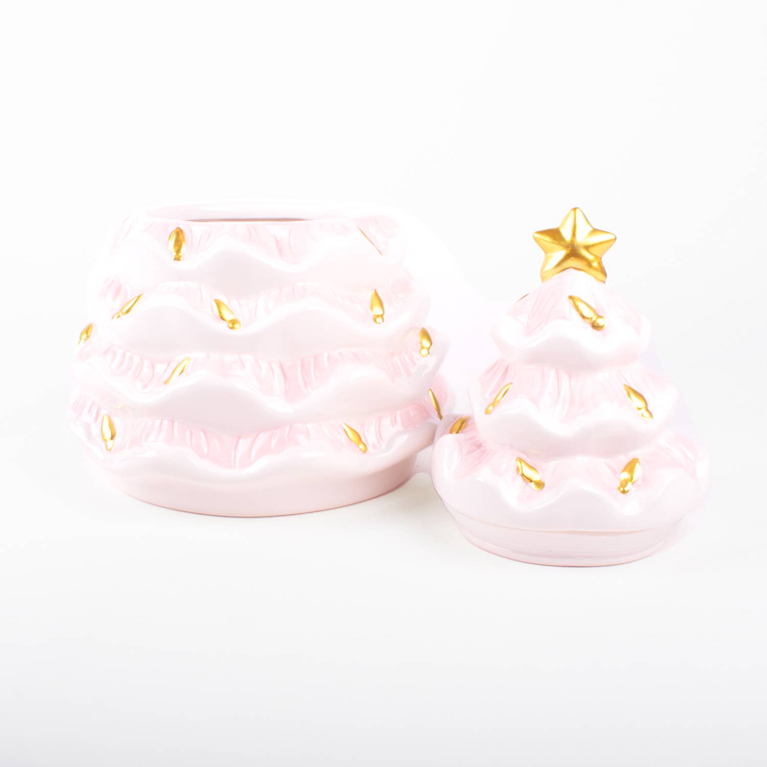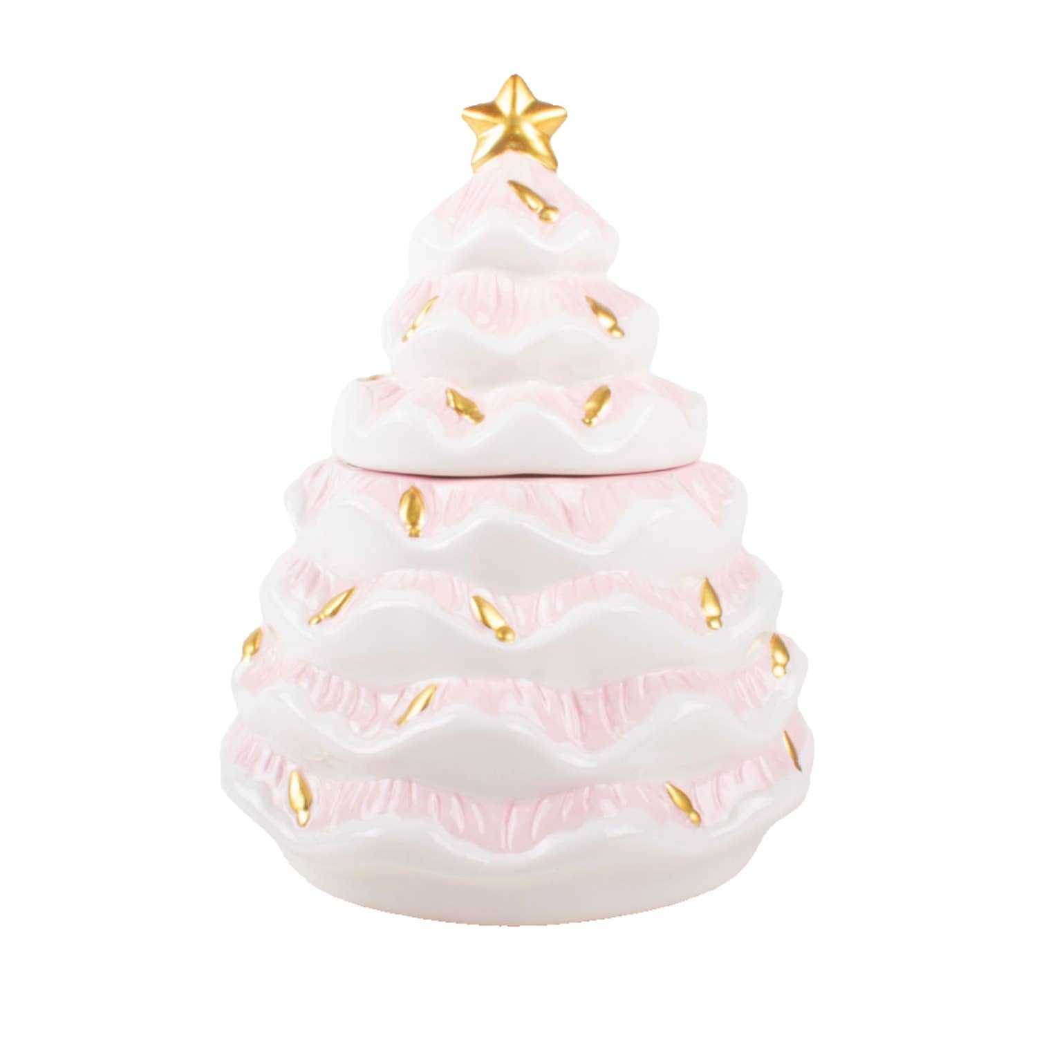 Looking to spruce up your holiday table or kitchen island this season? This Pink Tree Cookie Jar is the perfect choice! This classic Christmas tree figure with a modern twist is sure to impress and delight all who see it. Crafted from ceramic, this cookie jar features a removable lid & is the perfect size for storing ample amounts of sweet treats. This darling decor can be the anchor to any buffet table or kitchen island at your upcoming Christmas party. And if you don't have a party planned in your future, use it as a festive planter for some seasonal cheer!